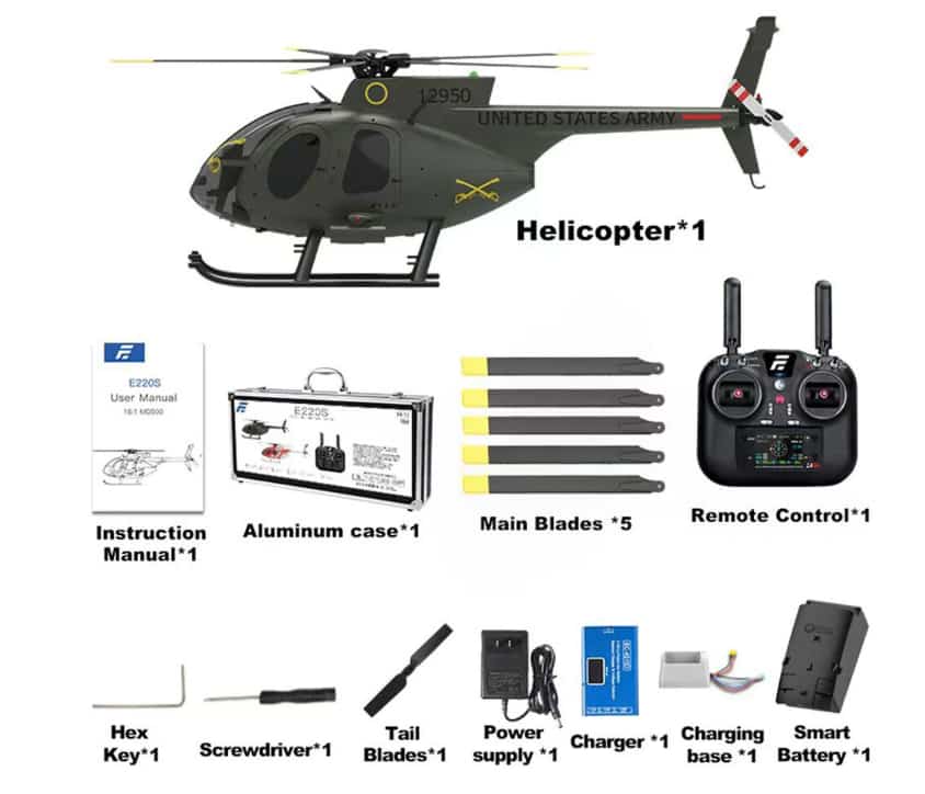 The E220S is marketed as “RTF” (Ready-To-Fly), and it lives up to that promise. It comes with everything you need to get airborne, including the transmitter. Key features that enhance the user experience include: