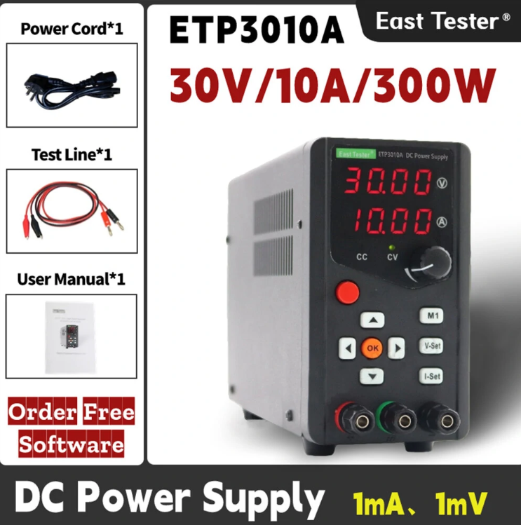 East Tester ETP3010A 300W Adjustable DC Power Supply stands as a versatile and reliable tool designed for laboratory and industrial applications, offering precise voltage regulation and ample power capacity. This advanced power supply unit (PSU) caters to a wide range of electronic projects, from testing circuits to powering up intricate devices with utmost stability and control. Let’s delve into the features and functionalities that make the East Tester ETP3010A a standout choice for professionals and enthusiasts alike.