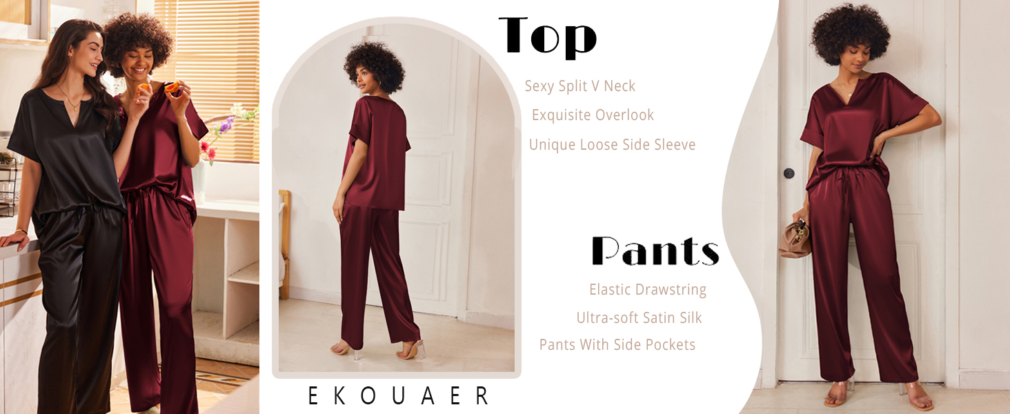- MULTIPLE WEARING STYLES: Versatility is key, and Ekouaer understands this by offering multiple wearing styles for their satin pajama set. Not limited to wearing it as a set, you can mix and match the pieces with other wardrobe staples, further enhancing its value and versatility.