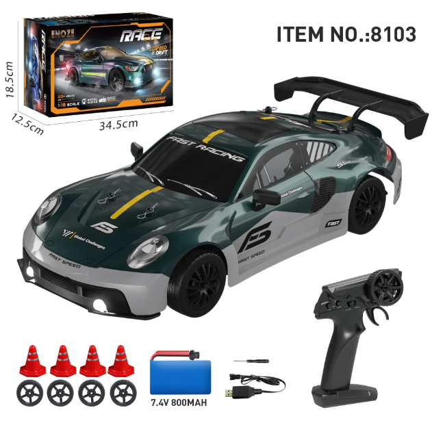 The ENOZE 8102 boasts a sleek, rugged design with dimensions of 28x12x8 cm, ensuring agility on varied terrain. Its 1/16 scale strikes a sweet spot between maneuverability and stability, while the lightweight chassis enhances durability during jumps and sharp turns. A standout feature is the adjustable steering angle, which can be tweaked manually under the vehicle to customize handling responsiveness. The car’s streamlined body houses a 7.4V 800mAh LiPo battery compartment, and the package includes a compact transmitter powered by 2xAAA batteries (not included). The bold color schemes and textured tires add a sporty aesthetic, appealing to both kids and adults.