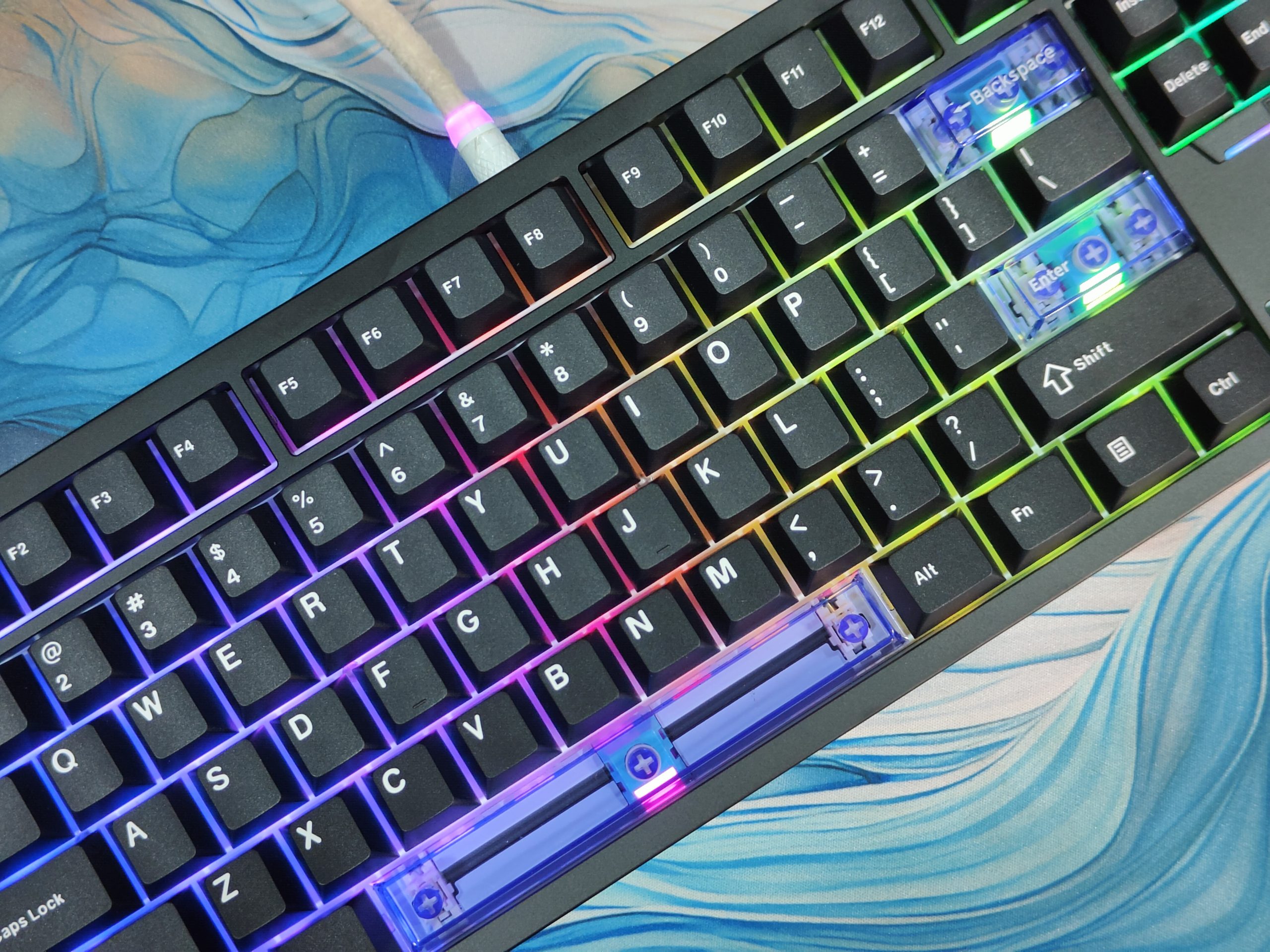 The Magcore 87 is not just a keyboard but a stylish addition to your setup, with fully customizable RGB backlighting. It features south-facing LEDs that ensure smooth, even lighting diffusion, even with opaque keycaps. You can choose from a variety of lighting effects—like wave, spiral, or reactive—and personalize them to your liking using the Epomaker software.