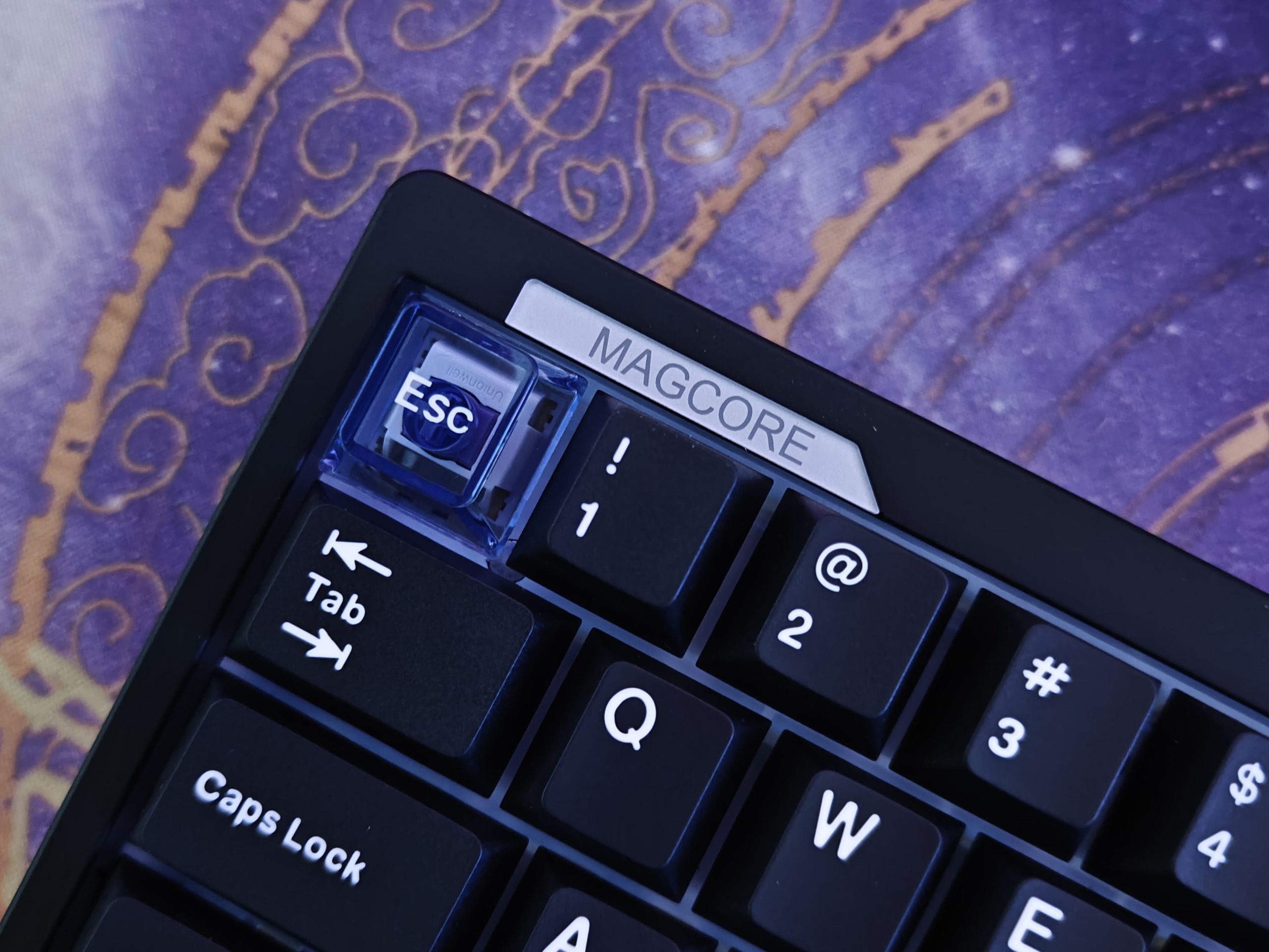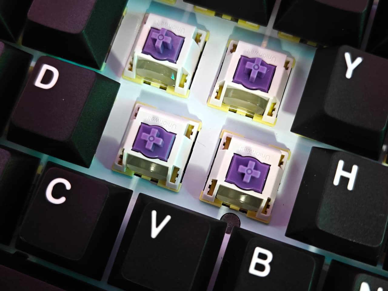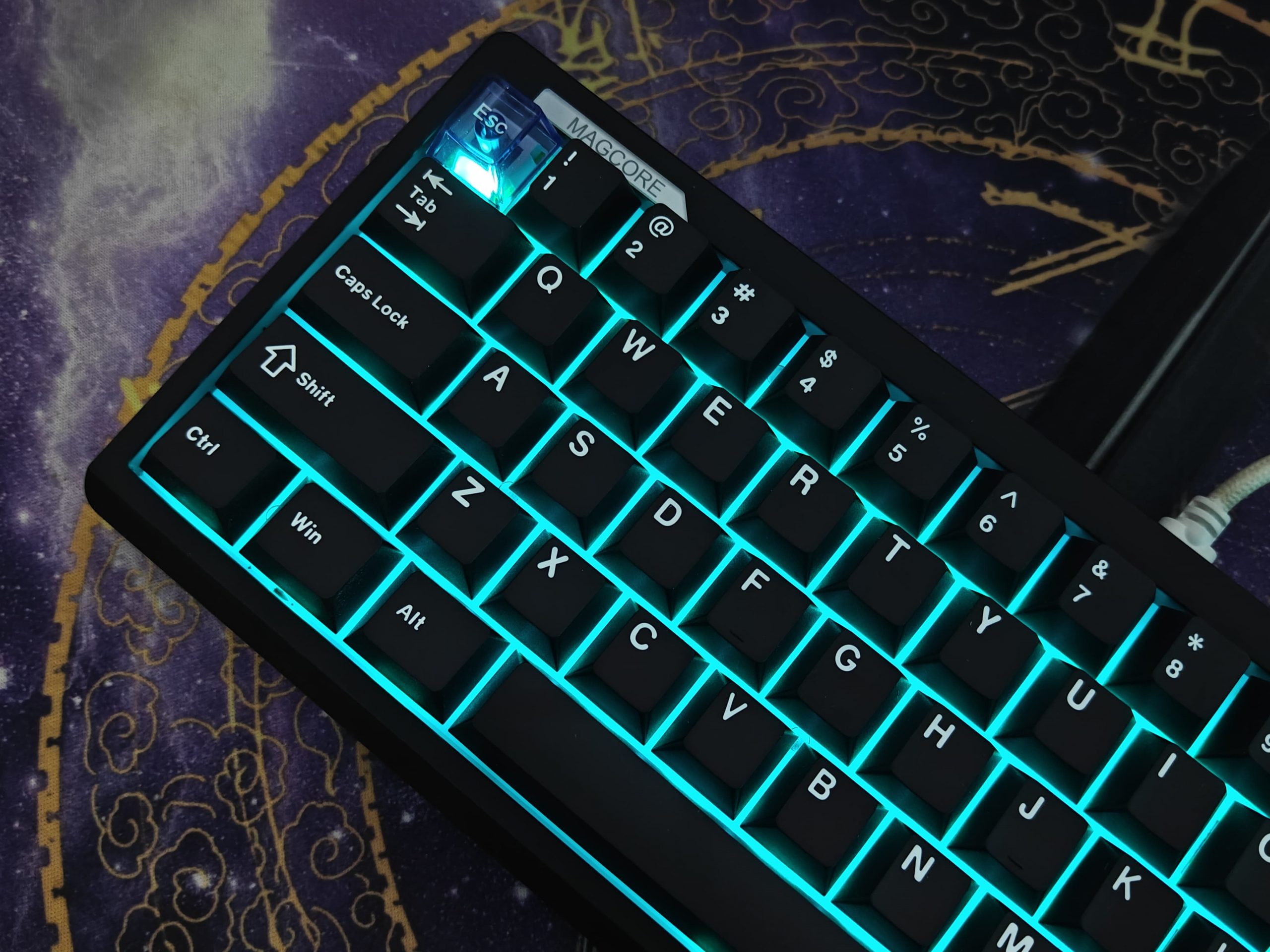 So here’s what I noticed about the lighting on this keyboard – the Magcore65 Lite has RGB LEDs that shine through from the south side of each key. What really makes it work well is the combination of the white plate underneath and these switches that have built-in light diffusers. Basically, instead of seeing those harsh bright spots you usually get with RGB keyboards, the light spreads out much more evenly across each key.