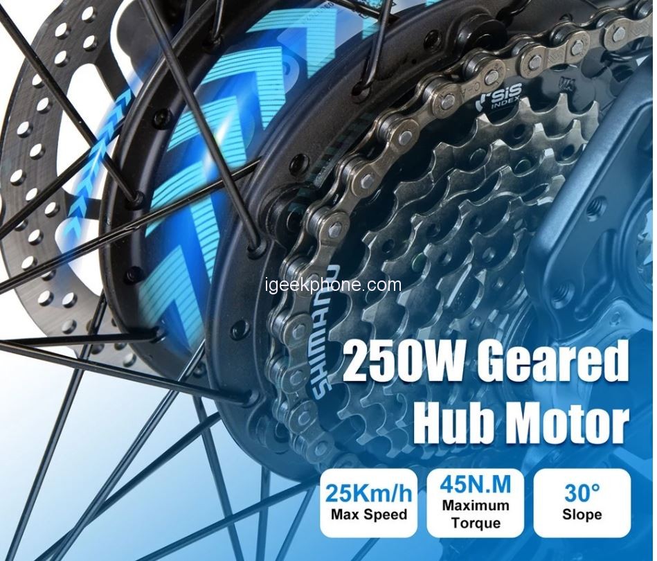 The bicycle is furnished with 27.5-inch air tires, front and back circle brakes, and a lockable front suspension fork, making it ideal for various landscapes, which will uphold riders up to 120kg. The 36V-10Ah Li-particle battery controls a 250-watt engine to go around 40-50km on a full charge (which is 5-6 hours). Highlights a computerized show on the handlebar; it can assist you with staying informed concerning your advancement, bicycle battery duration, and that’s just the beginning.