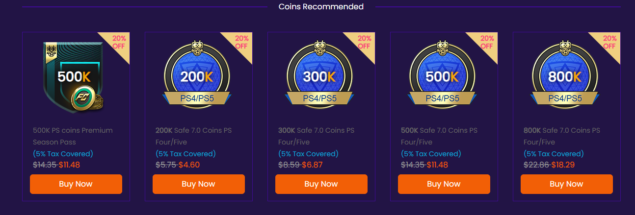 The flash sale includes some of the most competitive prices available right now. For example, the 300K coin package drops from $8.35 to just $5.84, making it one of the best-value options for quick squad improvements. If you’re aiming higher, the 500K Premium Season Pass coins are now available at $11.48, with tax already covered.