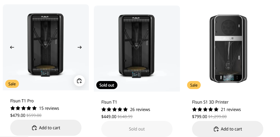 If you’re just getting started or need an extra machine for quick jobs, FLSUN’s second-hand section is worth exploring. Refurbished models, starting as low as $50, offer incredible value with quality assurance from the brand itself.