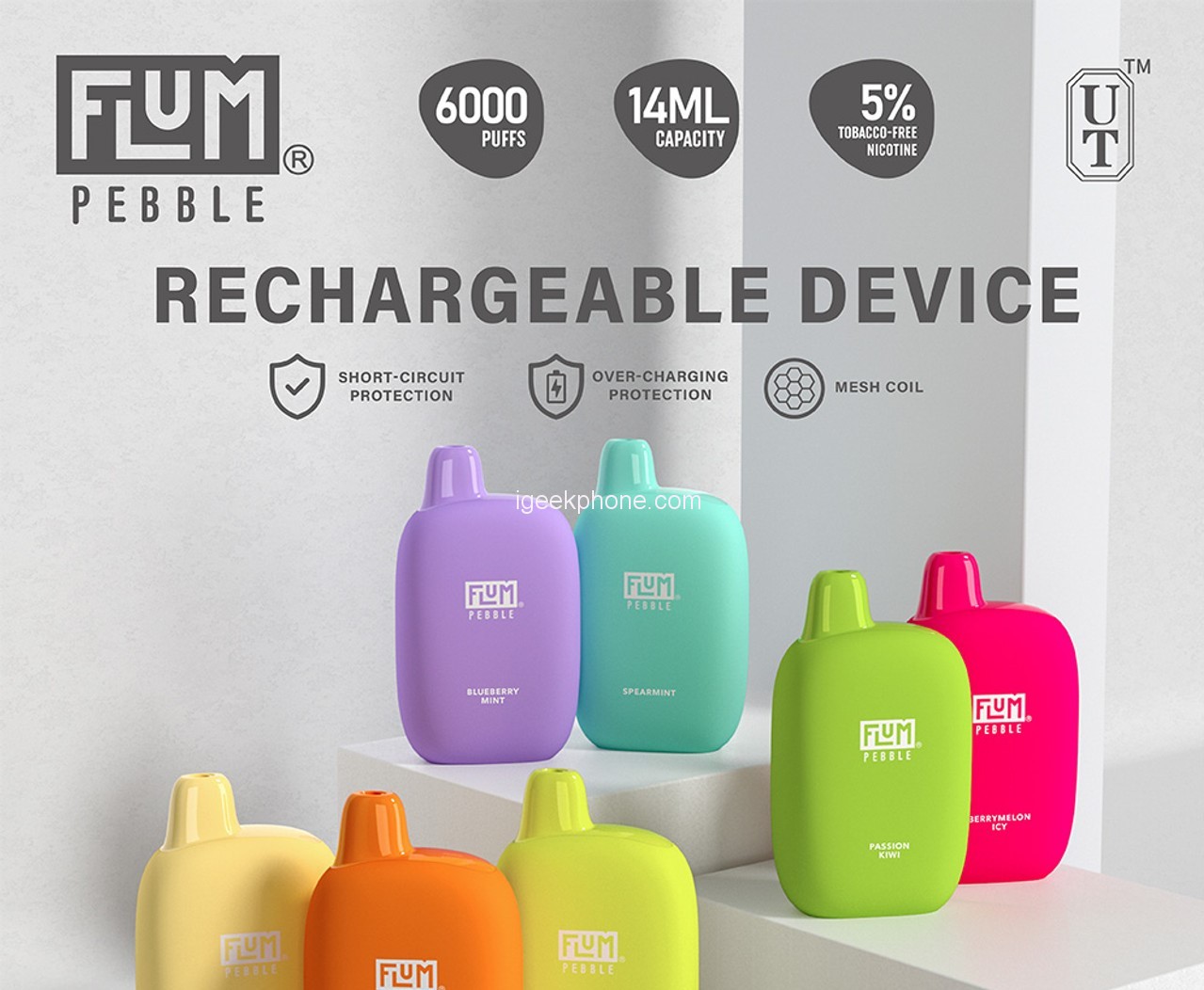 In conclusion, the Flum Pebble 6000 disposable kit offers a reliable and high-quality vaping experience. With its long battery life, powerful hits, and a variety of delicious flavor options; it caters to the needs of both new and experienced vapers. At a competitive price of $13.59 with a discount coupon: IGEEK20 and the added benefit of a 15% discount when purchasing three or more; Vapingland is the ideal destination to acquire this excellent device.