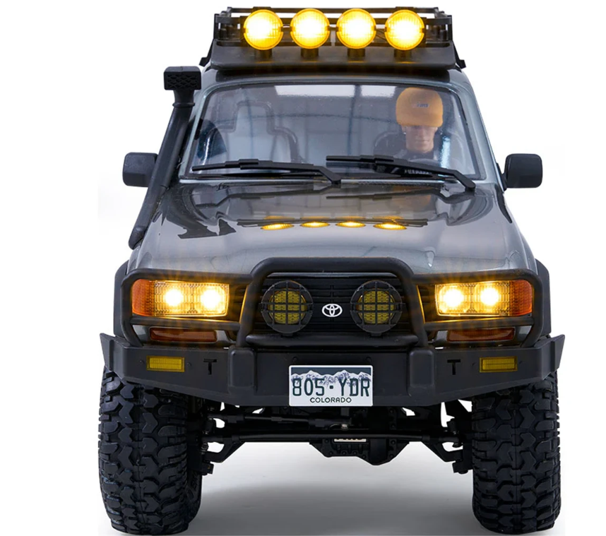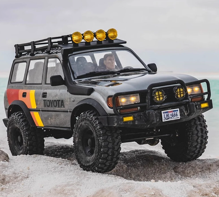 The FMS FCX10 LC80 is designed to replicate the iconic TOYOTA Land Cruiser 80, a vehicle renowned for its durability and off-road prowess. Every detail of the model reflects the original, from the meticulously crafted bodywork to the authentic color schemes. The realism extends beyond aesthetics; the vehicle features realistic LED lights that add to its charm and functionality, especially for night drives and outdoor expeditions.