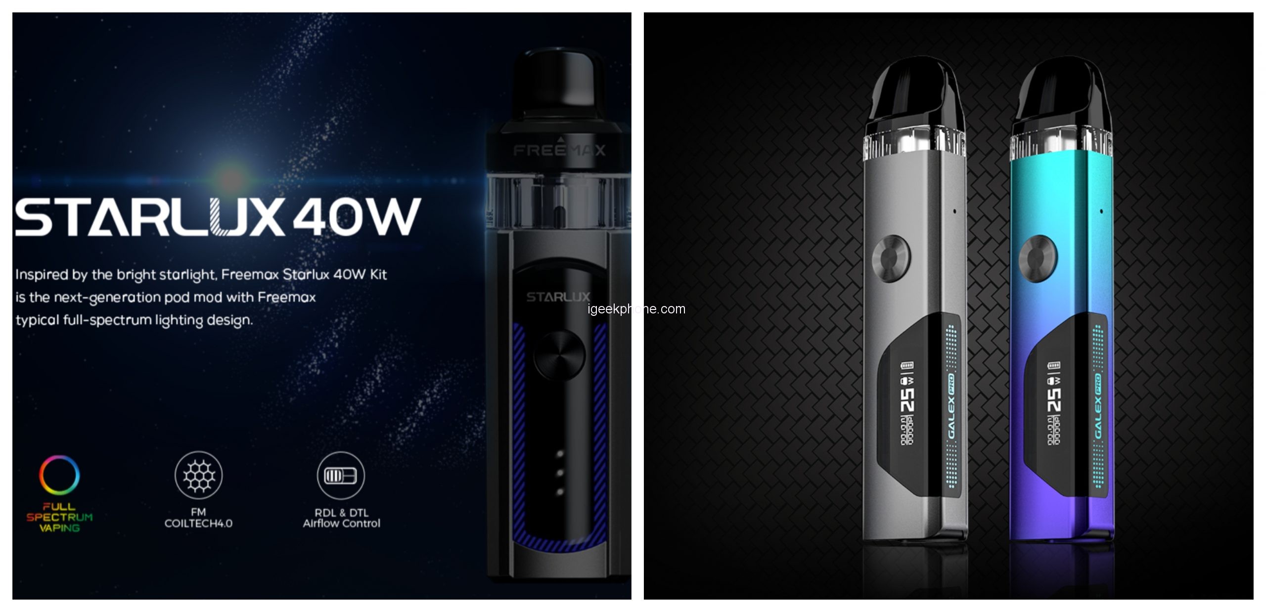 When it comes to vaping, choosing the right device can be a difficult task. Two popular options on the market today are the Freemax GALEX Pro Kit and the Freemax STARLUX 40W Kit. In this comparison review, we will take a look at the design, features, and overall performance of these two devices to help you make an informed decision.