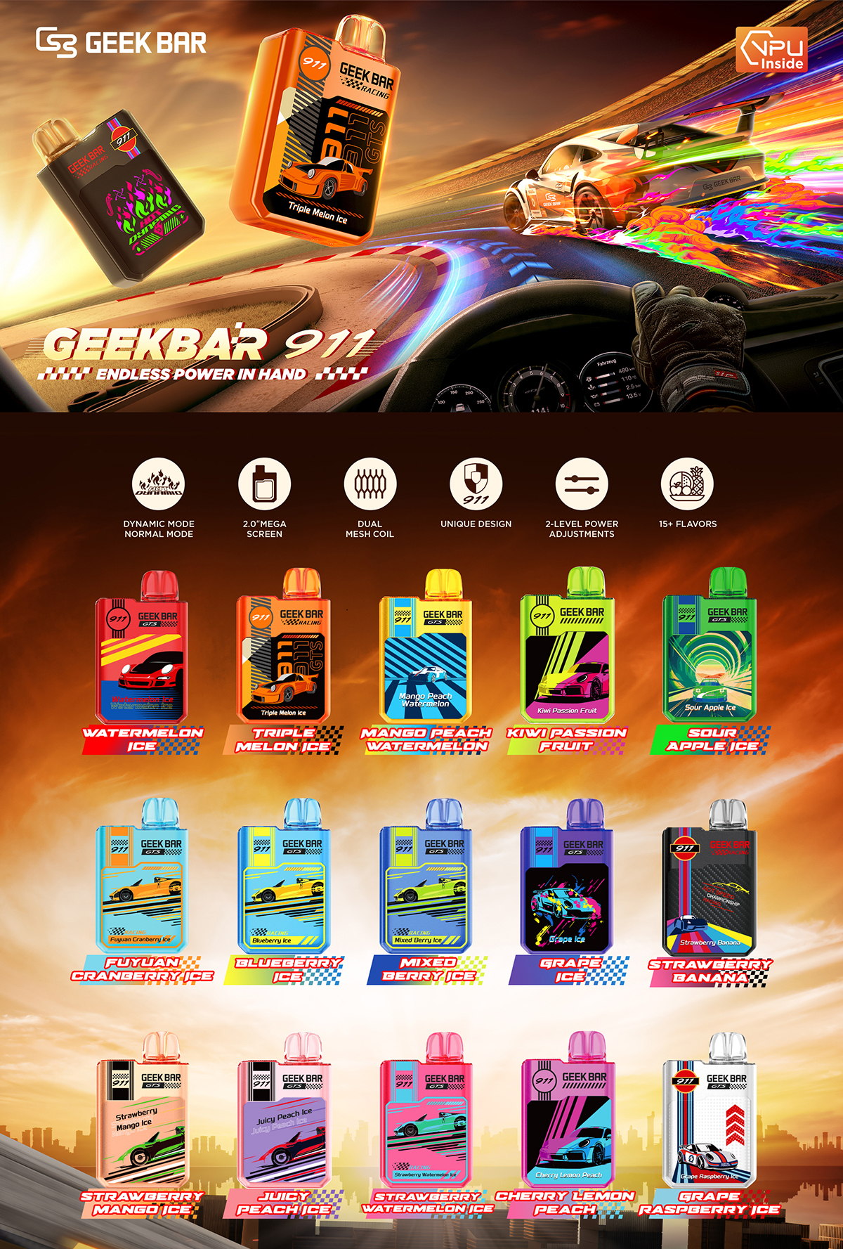 Geek Bar 911 GTS Vapeis designed with convenience and comfort in mind. Because it is so light and small, you will be able to take your favorite flavors with you wherever you go. This portable vape has an implicit 800mAh battery, providing long-lasting performance for all-day vaping pleasure.