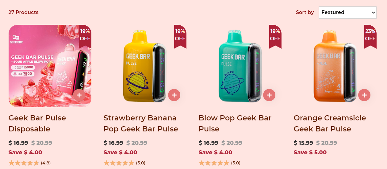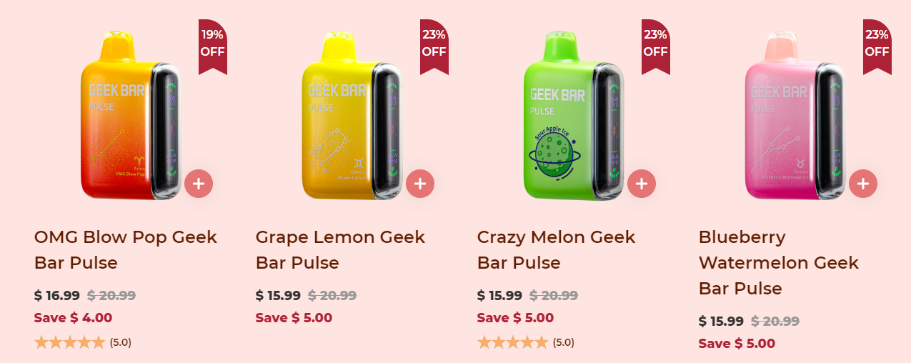 Experience the magic of Geek Bar Pulse Disposables at unbeatable prices. Each flavor is a unique adventure, designed to captivate your senses and elevate your vaping experience. Enjoy up to 23% off on your favorite Geek Bar Pulse flavors during this limited-time flash sale.