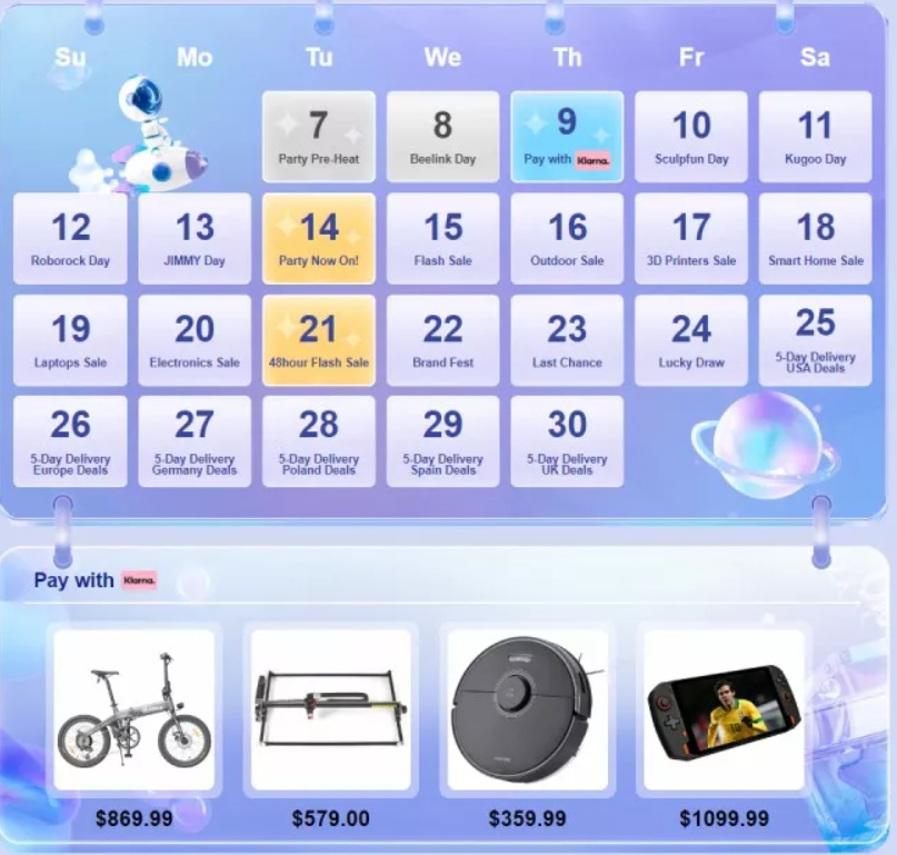 GeekBuying offers coupons for all users who provide savings of $3 to $50. Moreover, these coupons can be used in conjunction with Klarna discounts for a cumulative effect. Here are the coupons themselves, which are valid from 14:00 (UTC + 8) on June 14:
