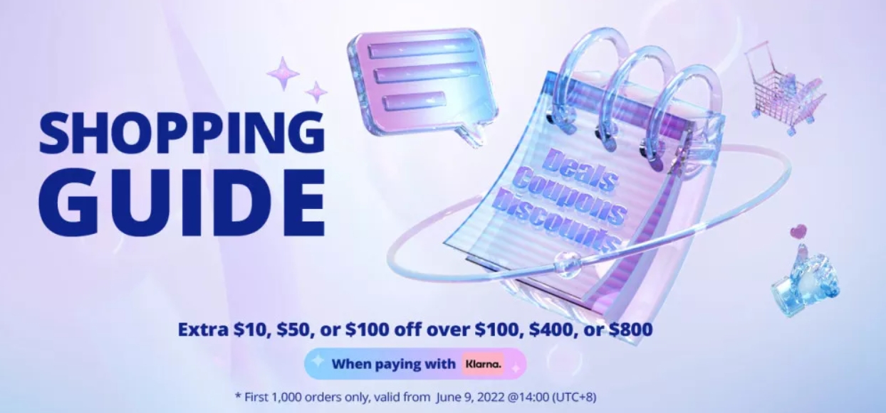 - Additional discounts of $10, $50 or $100 for orders over $100, $400 or $800 respectively and payment through Klarna. A number of European countries, including the United States and Australia, already support Klarna payments.