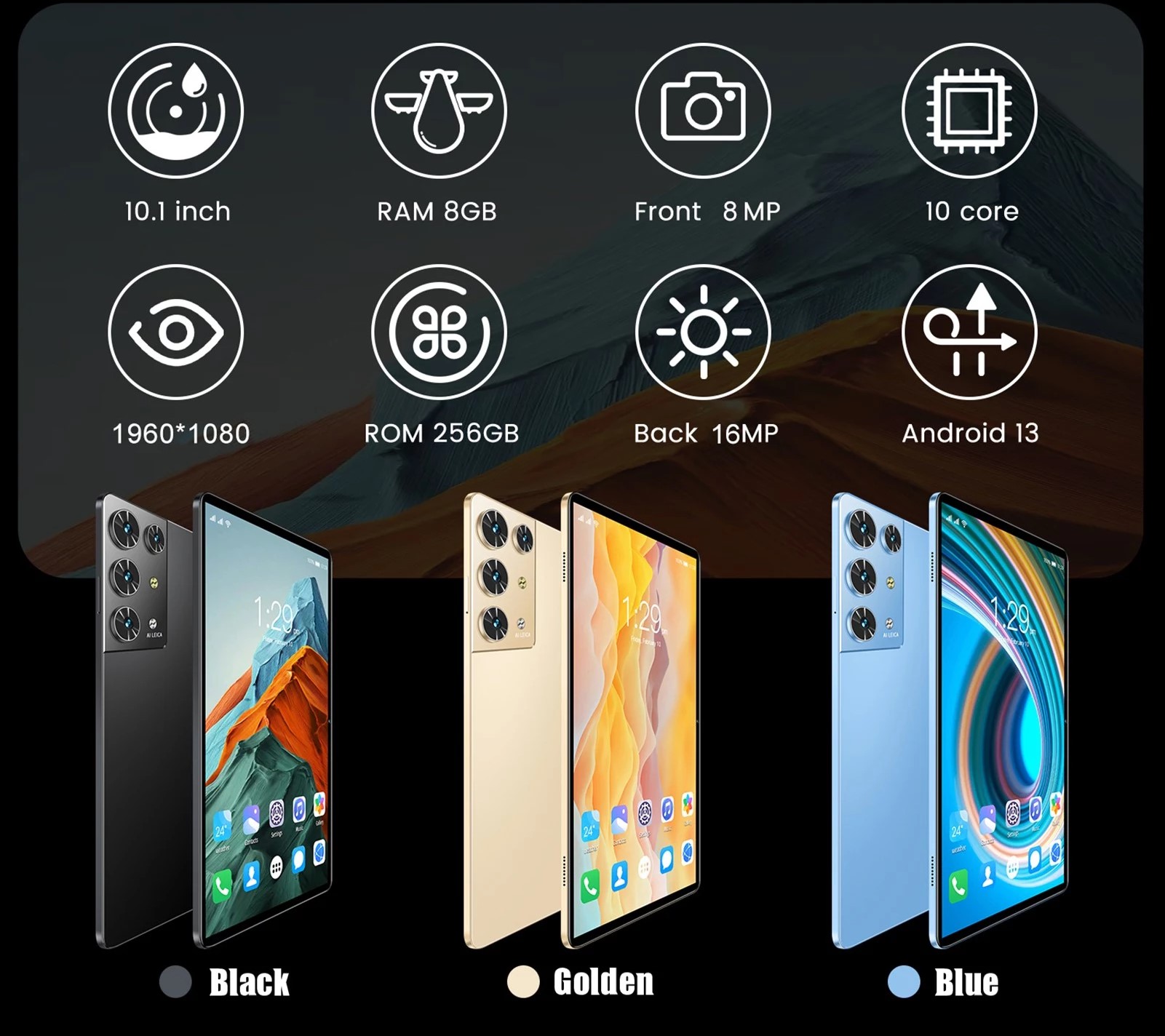 Indulge in an immersive visual experience with the 10.1-inch high-definition screen; boasting an impressive 1960*1080 resolution. Whether you’re engrossed in a movie, deeply focused on a game; or diligently working on crucial tasks, every detail is brought to life on this striking display. Notably, the Android 13 Tablet enduring 7000mAh battery offers prolonged usage without the need for frequent recharges; making it the perfect companion for long workdays or entertainment-filled journeys. Stay seamlessly connected with the support for 5G WiFi and 5G calls; ensuring a stable network connection wherever you are.