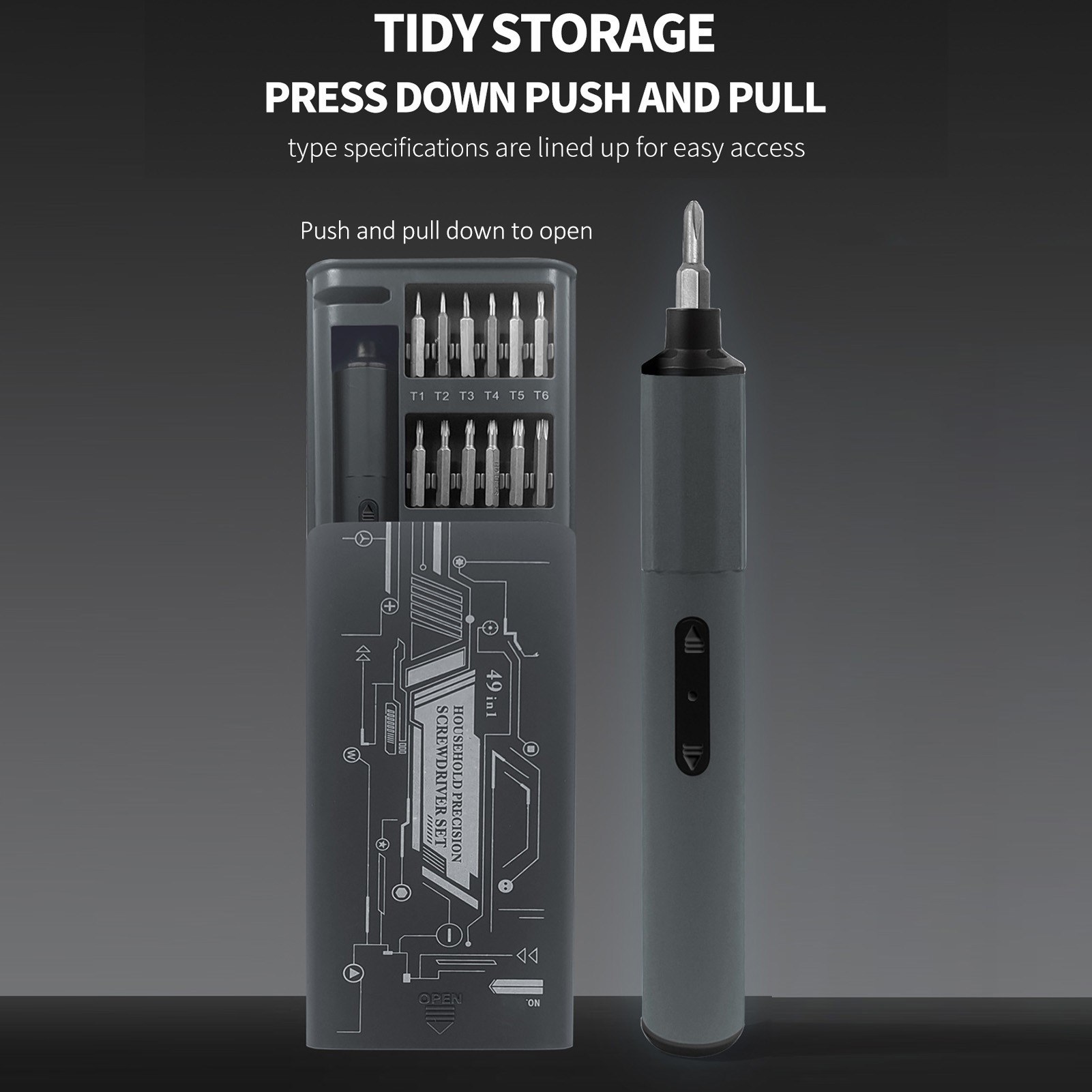 Say goodbye to constant recharging interruptions with the mighty 400mAh battery, capable of removing over 1000 screws on a single charge. Enjoy uninterrupted workflow and embrace efficiency without the hassle of frequent recharging. Keep your workspace organized and clutter-free with the electric screwdriver set’s convenient storage box, providing easy access to all 48 precision bits. Versatility meets convenience as this set becomes your go-to solution for disassembling and installing various devices, from smartphones to laptops and cameras – everything you need is neatly organized and right at your fingertips. Upgrade your toolkit and experience precision like never before with this comprehensive cordless screwdriver set.