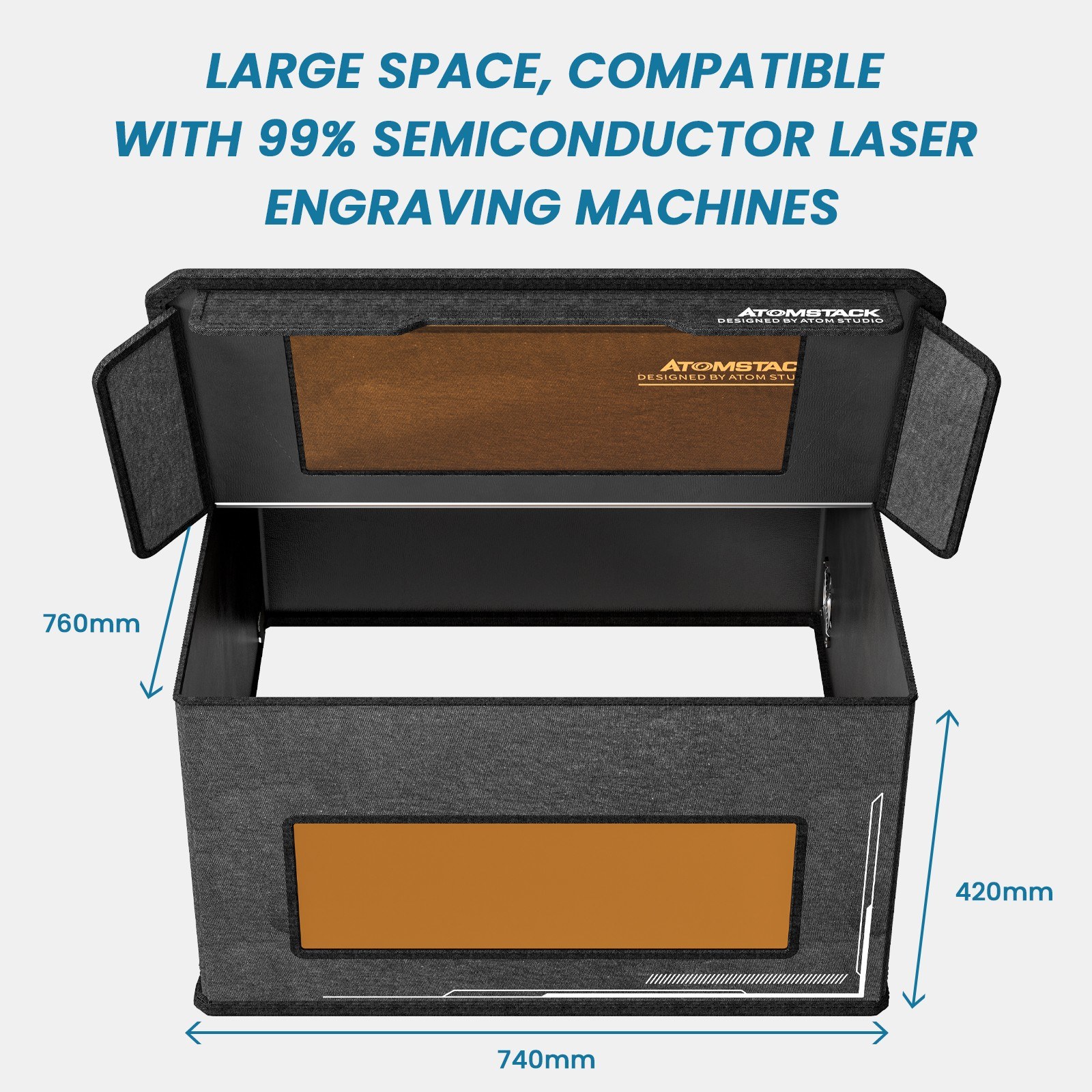 Furthermore, the FB2 protective box offers a generously spacious area of 760x730x400mm; accommodating a wide range of semiconductor laser engravers available on the market. Its smooth air inlet and outlet design, featuring an enlarged air inlet, enhances air circulation; thereby preventing low-pressure effects and ensuring a smooth engraving process. Plus, its foldable and portable design makes it convenient to store and transport, making it a practical addition to schools; offices, studios, or wherever your creative endeavors take you. Whether you’re a professional engraver or an enthusiast, the FB2 protective box is a valuable tool for enhancing safety and productivity in your workspace.