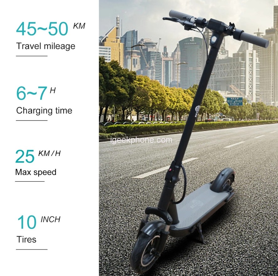 When you arrive, you can fold the scooter; which not only saves space but also makes it easy to carry with you. If you were a beginner of electric scooter, which is a minimalist design, and easy to operate. The applicable age range is very wide and people over 13 years old can ride this scooter. You can buy Bezior S500MAX from TOMTOP at €339 (Inclusive of VAT) by using Coupon Code: FFS500MAX with Free shipping from Germany