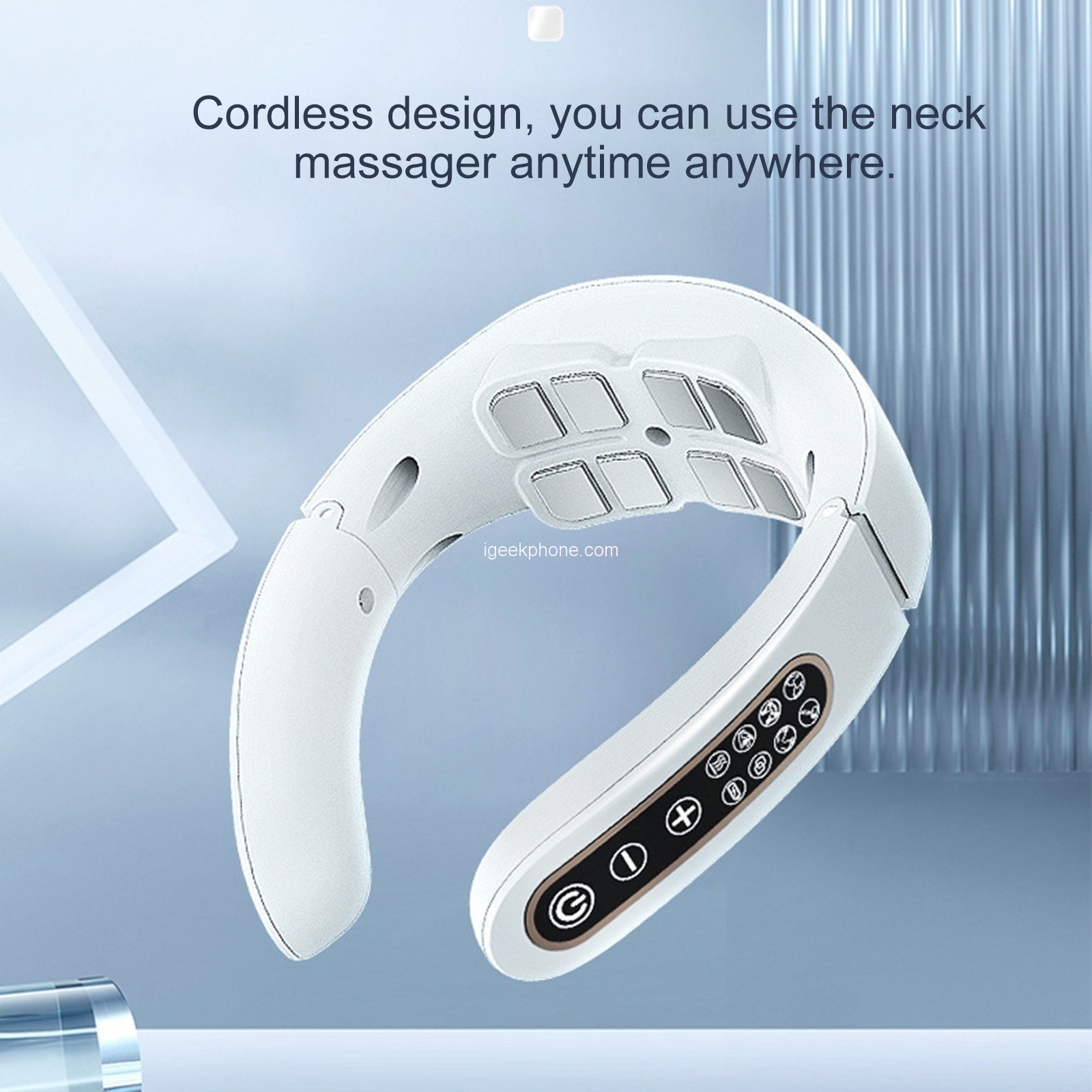It is super powerful, portable, and lightweight (only 4.93 ounces). Built-in a 500mAh large capacity battery allows you to enjoy a comfortable massage for 10 days after 1 hour fully charged; (the green light is always on after fully charged), 15 minutes per day ( with a 15 mins auto-off function to avoid overuse). “U” shape design and high-elastic frame technology allow this neck massager to better fit the human neck size and curves. Smart neck massager is made of breathable silicone material, and friendly and durable stainless steel pads to avoid discomfort when wearing. So that you can easily choose the most suitable mode to achieve deep relaxation (that eases muscle tension and cervical fatigue) for 15 minutes at home, office, or outdoors.