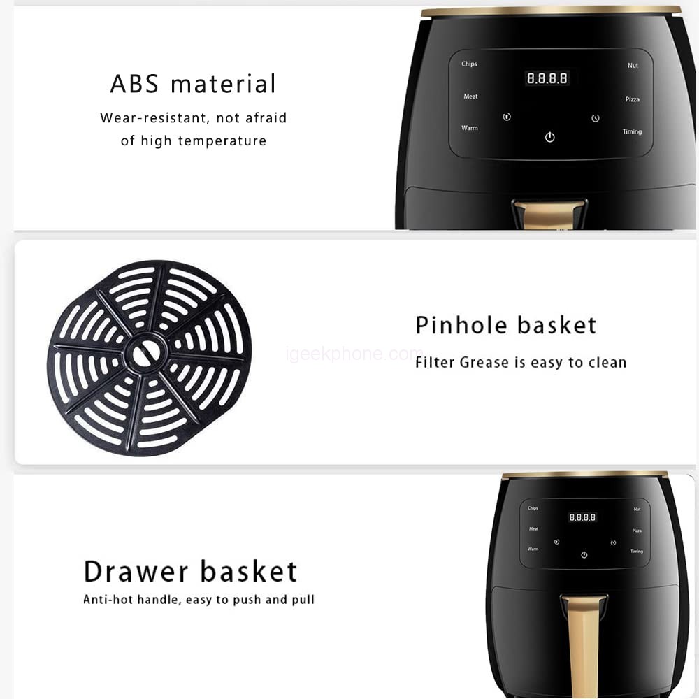 This FUCHU 6L Electric Air Fryer comes with a detachable non-stick grill. Teflon non-stick coating is used on the lining and grill to prevent food from sticking to the grill; which effectively filters oil and makes it healthier to eat and easier to cl-ea-n. The air fryer has the appointment timing function; which can put the prepared ingredients into the oven and wait for the appointment time. The frying basket with a handle can be pulled out to check the food condition; which can control the heat better.