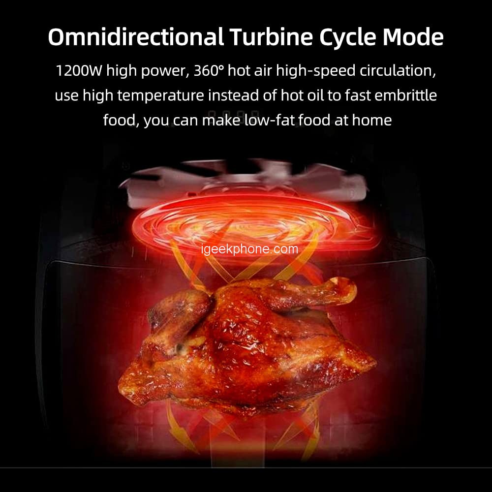 Keep cooking simple with the FUCHU 6L Electric Air Fryer . Its compact frame makes it perfect for small spaces, while the 6L capacity and temperature range of up to 450°F make no compromises. This FUCHU 6L Electric Air Fryer comes with 1200W high power and 6L large capacity. Without frying in oil, 360° hot air high-speed circulation, high temperature instead of hot oil fast embrittlement food, you can make low-fat food at home, you can make pizza, French fries, egg tarts, roast chicken and other food.