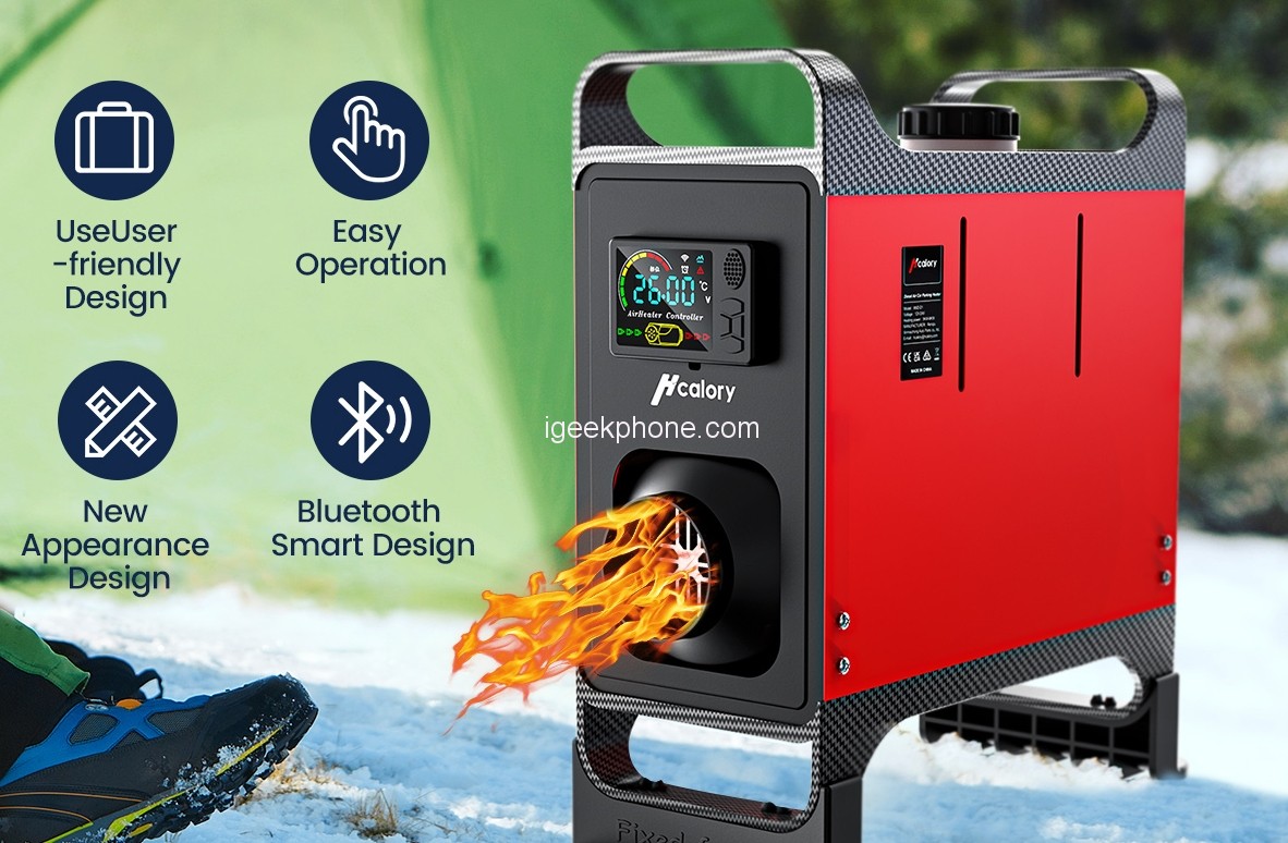This Hcalory 5-8KW Car Parking Diesel Air Heater can be applied for heating the cab of various diesel mechanical vehicles such as cars, buses, RVs, trucks, engineering vehicles, etc. You can buy it from Banggood at €268.54 by using 10% off Coupon Code: BG2776d4 until 9/30.
