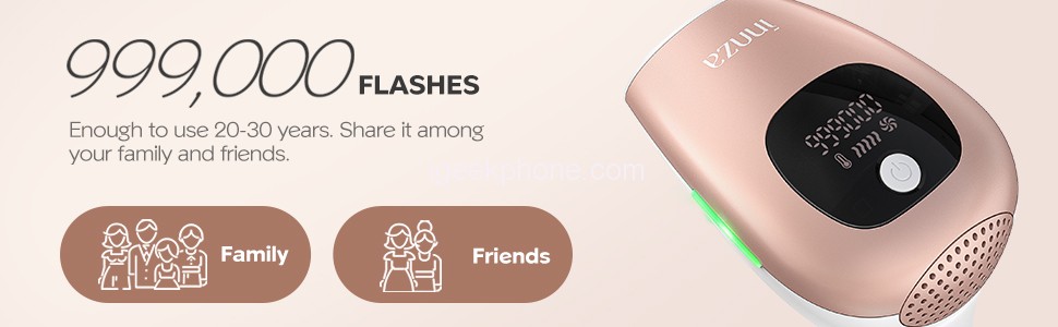 INNZA D-1176 IPL Hair Removal comes with 999,000 flashes, twice longer usage than 500,000 flashes devices on the market. You can share it with whole family and friends. Clinically proven, the IPL hair removal system is 100% SAFE to use at home for women and men. The ergonomic grip is comfortable and very easy to operate. It’s easy to hold and angle, and it is meant to help you comfortably angle the device toward any hard-to-reach areas, such as in the armpit, bikini area, or behind the legs.