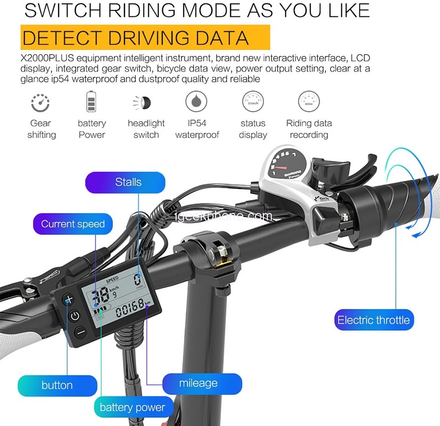 Lankeleisi is designed to support cycling activities on city streets. Thanks to full suspension, you can traverse bumpy roads while still comfortable. The smart display & headlight feature will also help when cycling at night. Lankeleisi X2000 PLUS is equipped with a lithium battery pack with a capacity of 10aH. The battery is able to supply additional power with a single charger. This electric bicycle has a quality frame made of aluminum alloy. This material is known to be lightweight, sturdy, and not easy to rust. This material also makes the bike body so light but still sturdy and provides high stability when you ride it.