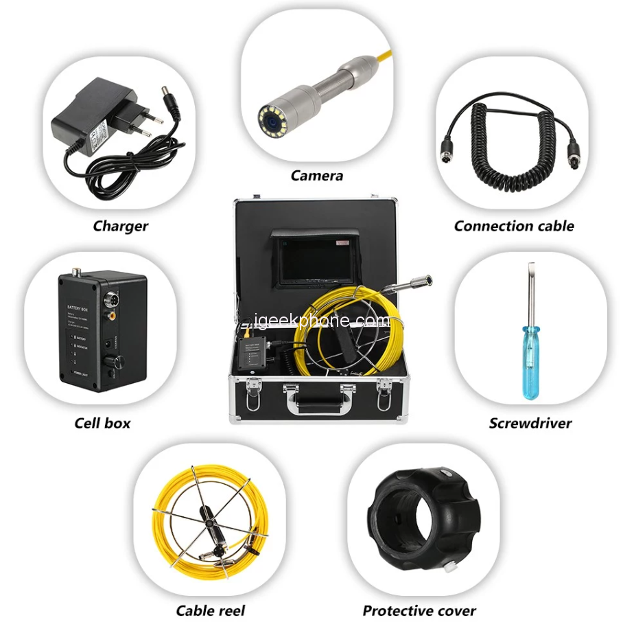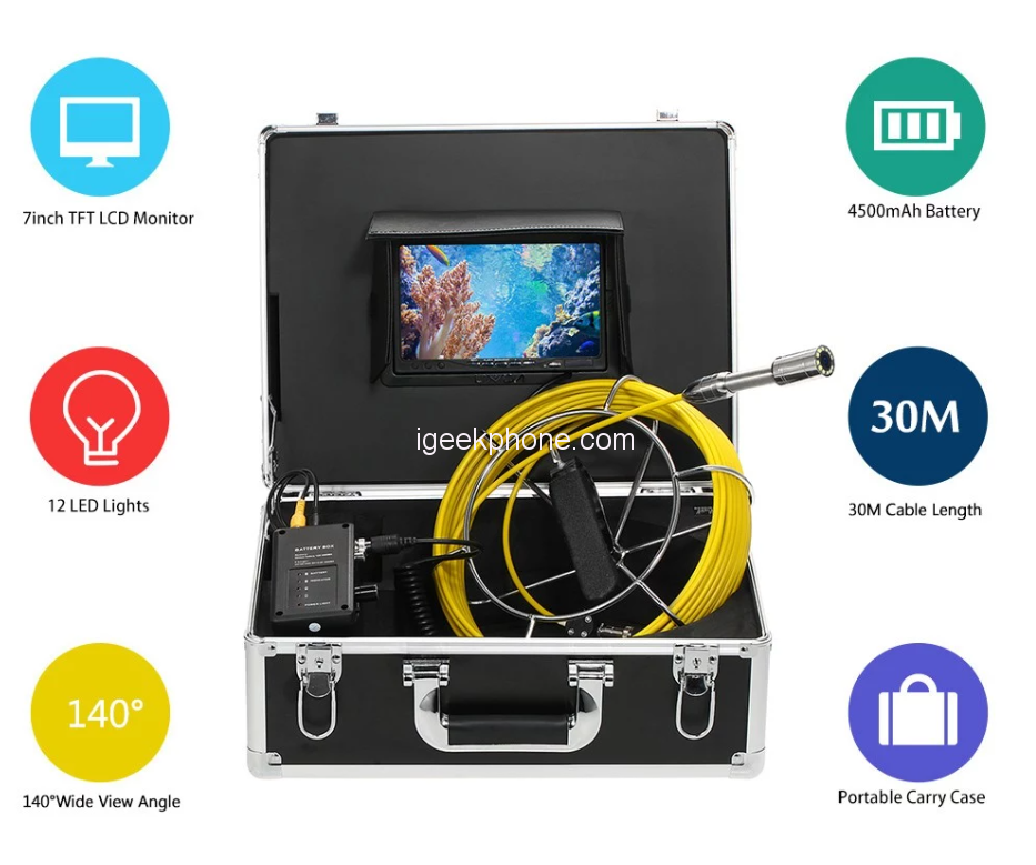 Lixada 30M Drain Pipe Sewer Inspection Camera Built-in 7-inch LCD color screen, It supports remote control for the monitor and 4500mAh rechargeable lithium battery and provides up to about 8 hours of continuous working time. Drain & pipe pipeline cameras can be used in underwater cameras, waterproof miniature camcorders, motor vehicle inspection, sewer pipeline inspection, line detection, home appliance maintenance, search and rescue, archaeological finds, drilling industry, Construction, etc.