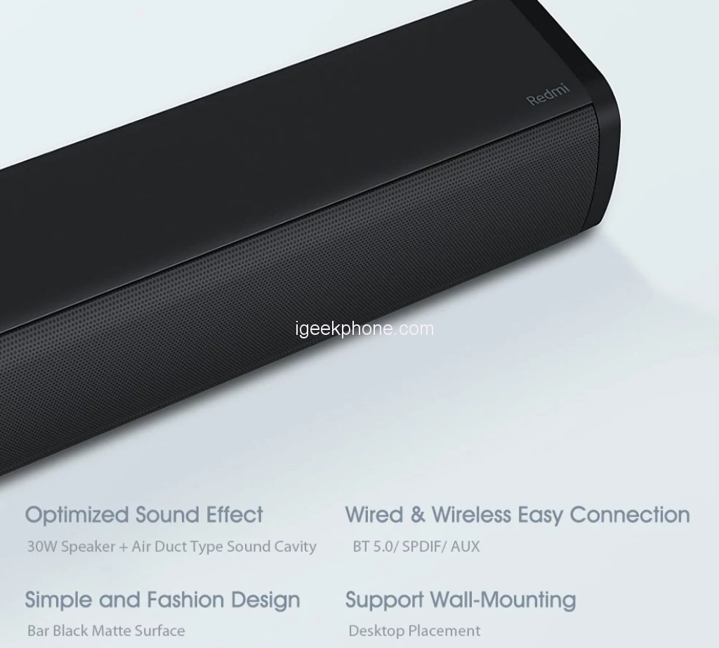 Redmi MDZ-34-DA TV Soundbar is equipped with a Bluetooth 5.0 module, with which you can output sound from a smartphone, tablet, laptop, or PC to the soundbar. Set up a connection and get a whole new experience of playing or watching videos. The range of the wireless connection has been increased to 10 meters. Provides a wired connection using a cable. You can use the Aux port (3.5 mm) to connect mobile gadgets; as well as the digital SPDIF interface to connect any TV model. We can buy it from TOMTOP at €45.85 in Flash Sale and Delivered from Germany Warehouse with Free Shipping.