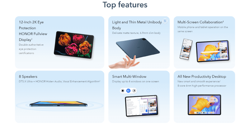 Looking for a tablet that offers a truly immersive visual experience, powerful audio, sleek design, and seamless multitasking capabilities? Look no further! The HONOR Pad 8 is here to redefine your tablet experience. This amazing device is now available at an incredible price of just €241.79 (inclusive of VAT) on TOTMOP, and that’s not all – enjoy free shipping from Germany! Immerse yourself in stunning visuals with the 12-inch 2K HONOR FullView display, boasting an impressive 87% screen-to-body ratio and ultra-slim 7.2mm narrow bezels. You’ll enjoy flagship-level visual quality like never before.