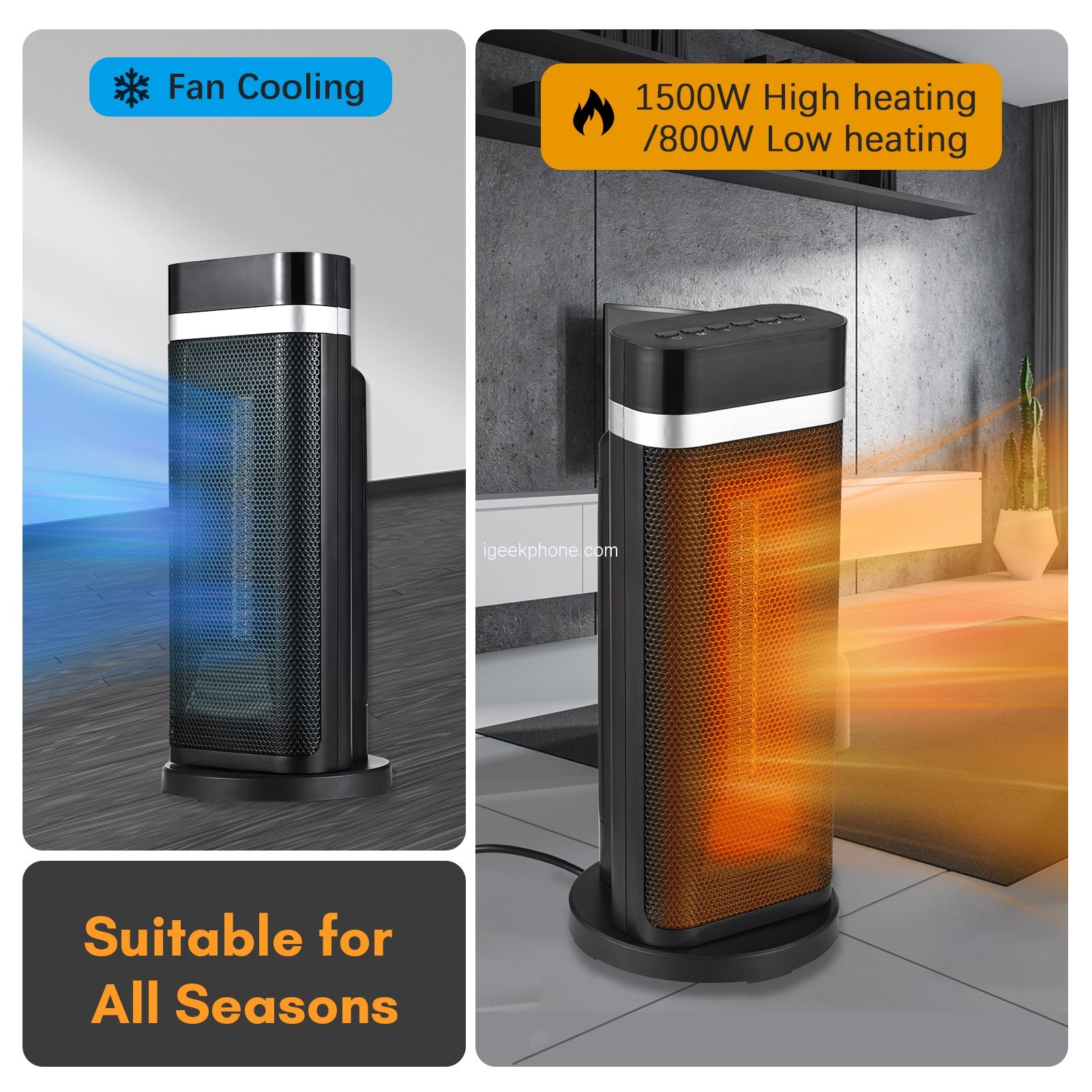 The TOMSHOO Electric Ceramic Heater contains a fan-only mode and 3 heating options (high; low, and eco-adaptive mode with an adjustable thermostat for controlling temperature levels.) Heaters indoor portable electric offers 3 heating modes ranging between 750 watts to 1500 watts in terms of output capacity. With a built-in precise temperature sensor, ECO mode automatically helps energy-saving based on the real-time temperature while keeping the room at a constant temperature. The handy remote allows for full access to the heater from up to 10m away. You can control the electric heater from the comfort of your couch/bed on cold mornings.