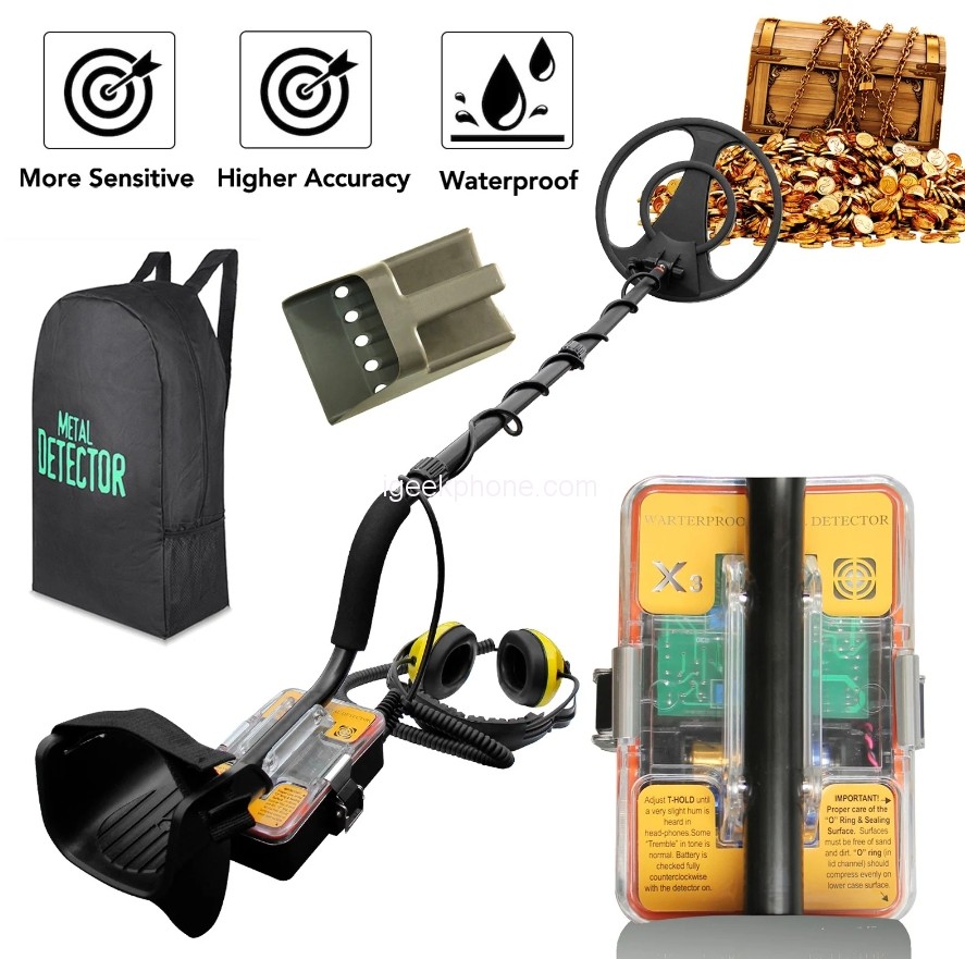 The control is very useful in minimizing ground noise on beaches containing large amounts of black sand or regions with sand. If the ground does not cause false signals the control should be set at a minimum for optimum performance. X3 Fully Waterproof Metal Detector comes with an earphone for you to use together, using the earphone in a noisy environment can get better results. It can use underwater, in salt water, in fresh water, on land, and so on, you can share it with your friends or families. You can buy it from CAFAGO at €129.49 in Flash Sale with Free shipping from Germany Warehouse
