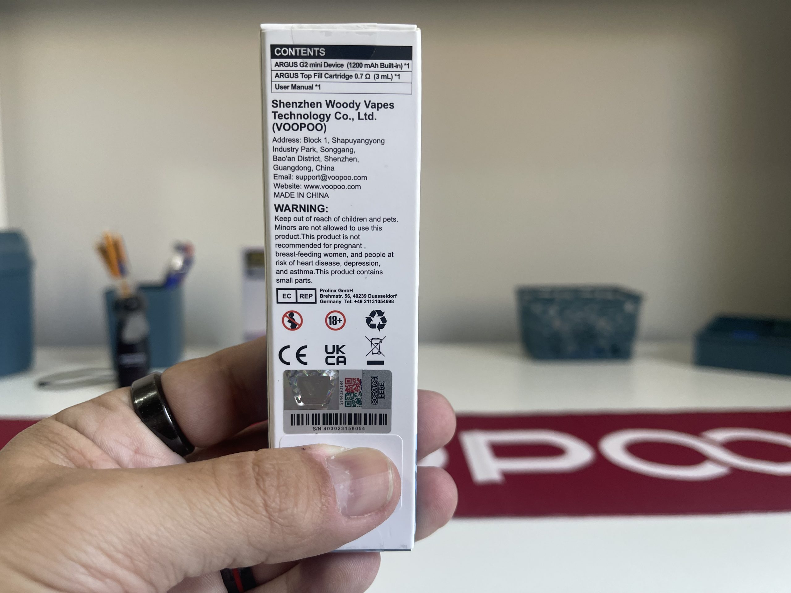 As you can see, it comes in a small box that includes the Argus G2 Mini device, a top-fill (3ml) POD and a user manual.