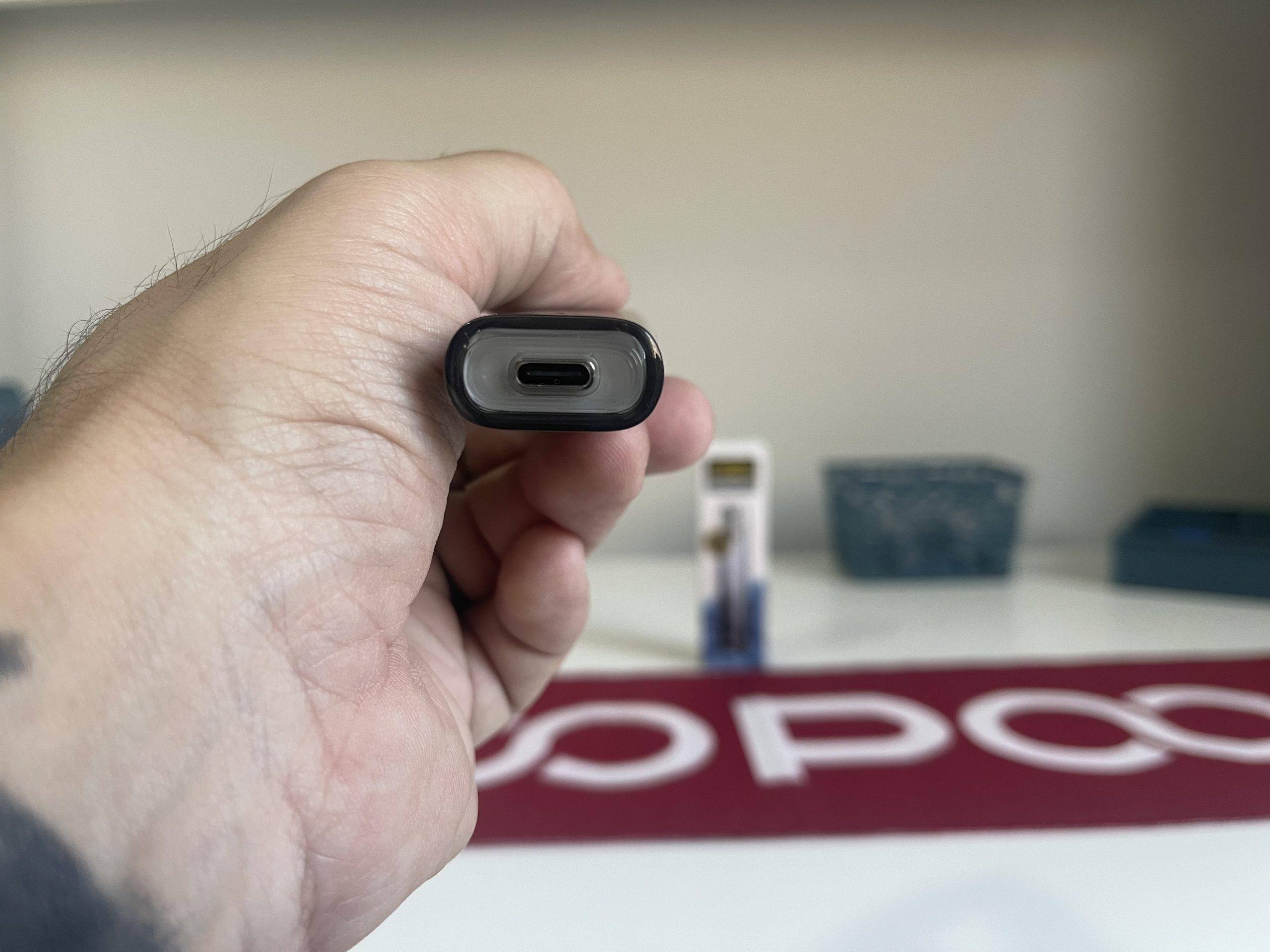 And at bottom we have of course a Type-C type charging port to charge the 1200mAh battery.