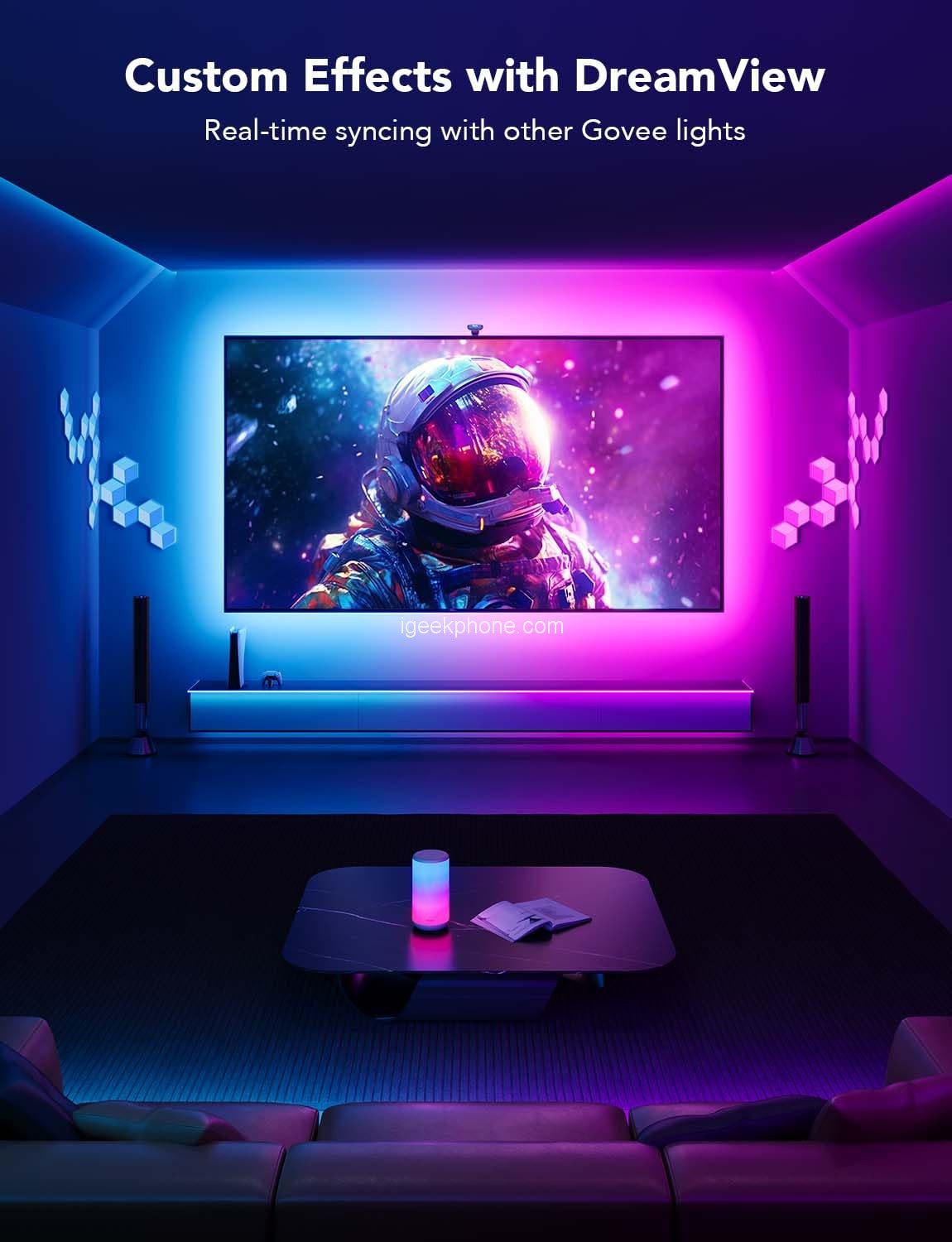 Experience the next level of visual immersion with Govee Envisual TV Backlights. Boasting an impressive upgrade of 60 LEDs/m and double the light beads, these backlights offer a denser RGBIC light bead distribution, resulting in more vibrant and lifelike lighting. Whether you’re engrossed in a movie or diving into a gaming adventure, the enhanced lighting enhances your viewing experience. The DreamView feature takes personalization to new heights, enabling movie enthusiasts to connect multiple Govee lights, creating a captivating and colorful ambiance that envelops the entire space. Prepare to be mesmerized by the stunning array of vibrancy that Govee Envisual TV Backlights bring to your entertainment setup.