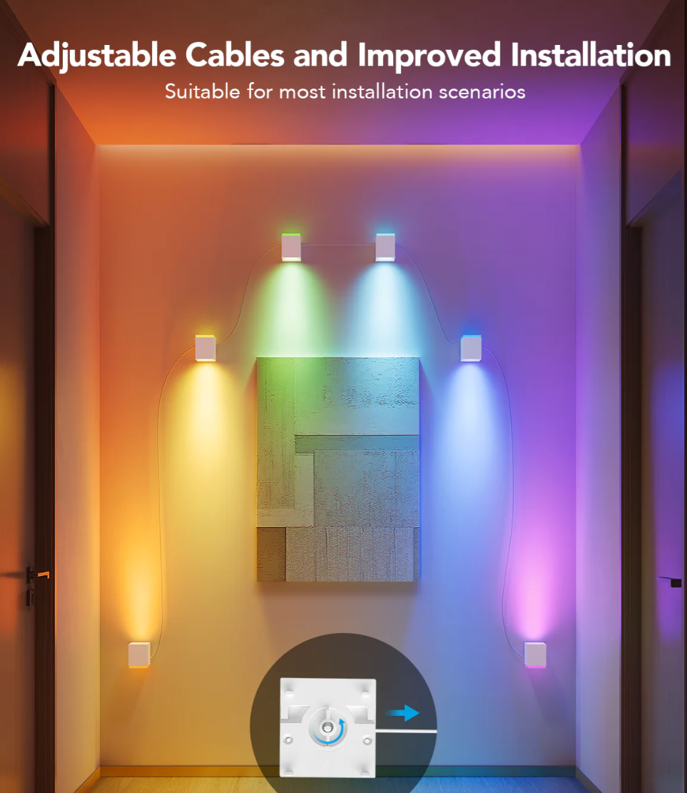 For those who like to get creative with their lighting, the Govee RGBIC Cube Wall Sconces also offer a personalized DIY mode. This allows you to set custom lighting effects according to your preferences, ensuring that your space reflects your unique style and personality. Additionally, the improved installation process makes it easy to install these sconces in a variety of different scenarios, with a length range of 27cm to 90cm to suit any space.