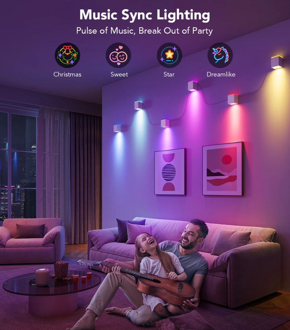 One of the standout features of the Govee RGBIC Cube Wall Sconces is their RGBIC effects. With RGBW lighting and the ability to produce 16 million colors, these sconces offer endless possibilities when it comes to lighting up your space. Additionally, with 49 presets to choose from, you can easily find the perfect color and effect to suit any occasion.
