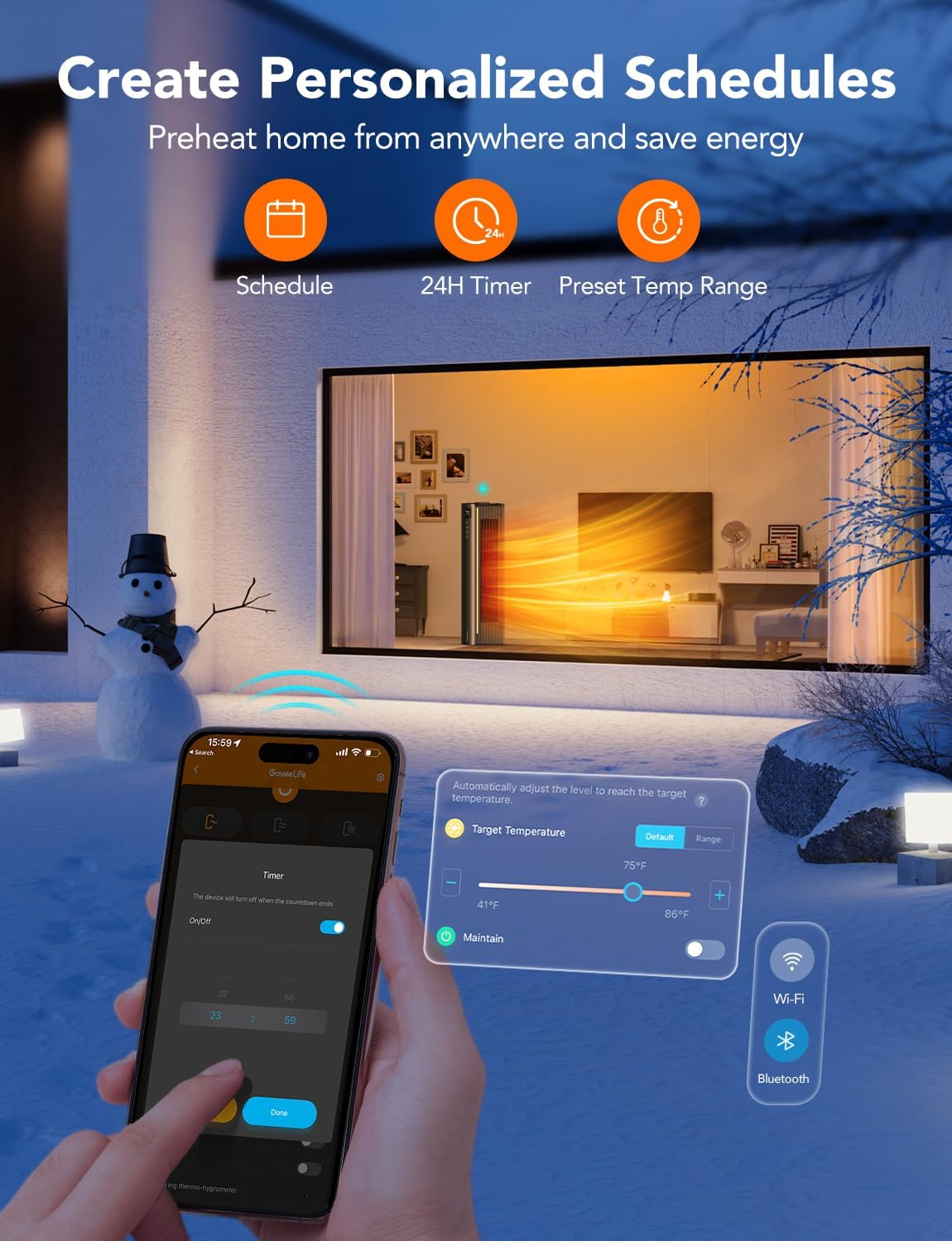One standout feature is the automatic constant temperature function. Integrated with a built-in sensor, the heater supports a thermostat display function. For more accurate and stable monitoring, users can connect it to a GoveeLife thermometer or hygrometer, enhancing the overall intelligent heating experience.