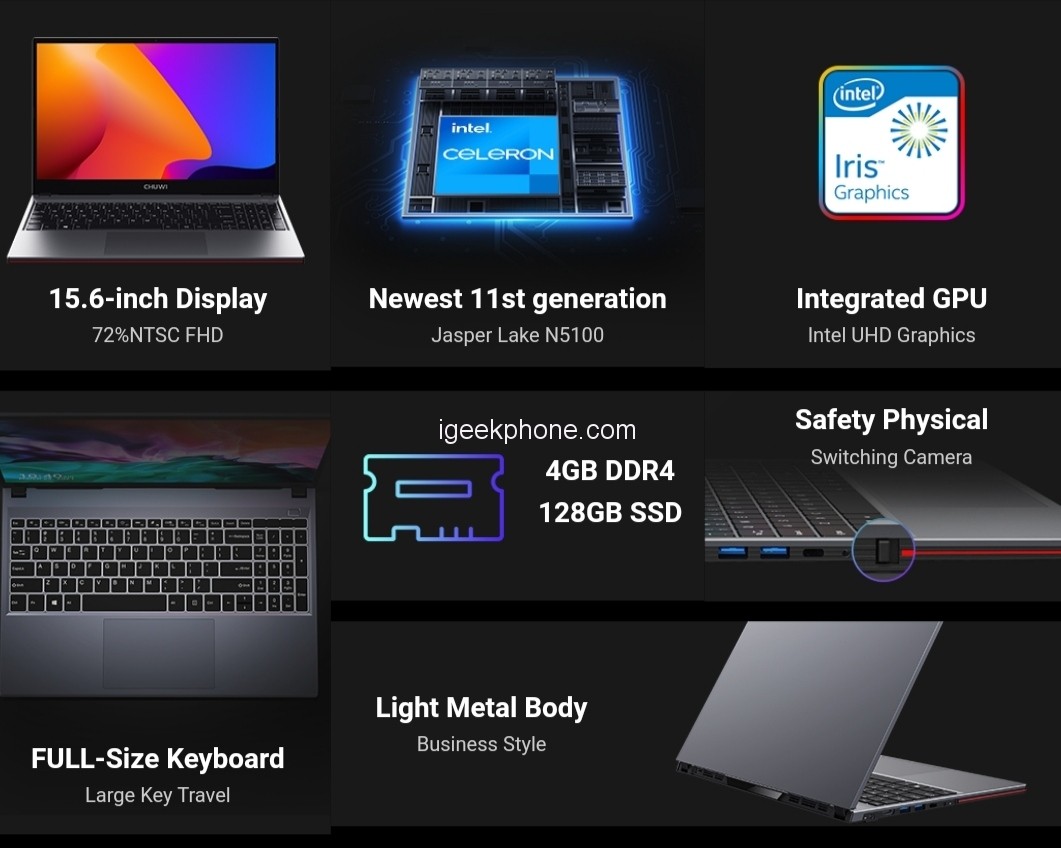 With the embedded screen, CHUWI GemiBook X is ready to deliver the best visual experience when browsing through web pages or documents. To power this premium laptop is a newest 11st generation intel celeron Japerlake N5100 quad core processor. It’s main frequency is 2.0GHz and turbo frequency is 2.7GHz. To back this processor is 4GB DDR4 RAM and 128GB SSD storage space that can be further expanded via other external storage options.