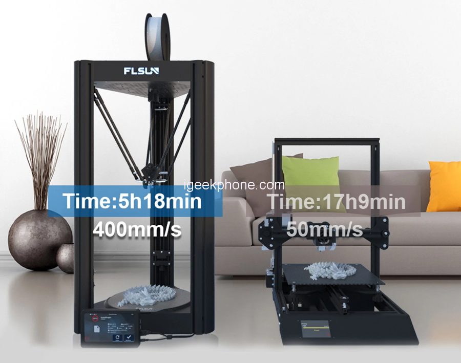 Flsun V400 3D Printer offers users a faster printing time with a maximum printing speed of 400mm /s which is way faster to be compared to the industry standards. This print also offers a large printing size of 300 x 410mm which is enough space to create your desired model or object. With the presence of the detachable PEI spring steel platform, the Flsun V400 3D printer can make the first layer of the printer more solid, while the hot bed can heat up to 110 degrees C. The printer features a dual-ball fan cooling system that ensures the cooling effect of the model and the life of the fan is prolonged.