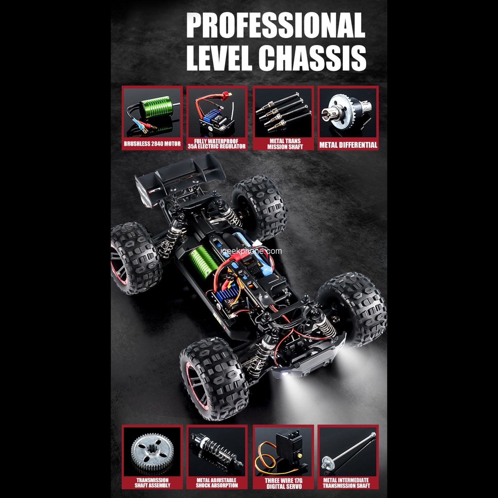 Experience the thrill of speed and precision with the HBX 2105A RC Car. Equipped with a high-performance 2840 brushless motor, this off-road vehicle can reach an impressive top speed of 75 km/h; providing powerful and efficient performance. When the sun sets, the LED headlights come to the rescue; illuminating the path ahead and allowing you to drive confidently in the dark. The 2.4G remote control frequency ensures unparalleled precision and responsiveness; granting you complete control over every movement for an immersive and exhilarating driving experience. Get ready to unleash the power and conquer any terrain with the HBX 2105A RC Car.