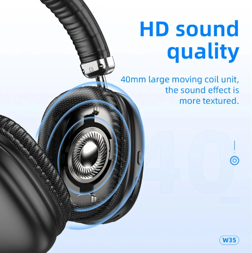 The HOCO W35 Max Wireless Headset is equipped with 40mm drivers that deliver immersive and crystal-clear sound. Whether you’re listening to your favorite music, watching movies, or taking calls, the W35 Max ensures that every sound is reproduced with stunning accuracy and depth. Experience the richness of deep bass, the clarity of vocals, and the intricacy of instrumentals like never before. With Bluetooth 5.3 technology, the headset provides a stable and seamless wireless connection, allowing you to enjoy uninterrupted audio quality.