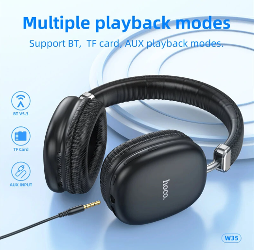 The HOCO W35 Max Wireless Headset offers versatile connectivity options to suit your preferences. It supports Bluetooth connectivity, allowing you to pair the headset with your smartphone, tablet, or laptop effortlessly. Additionally, it features a TF card slot and an AUX port, giving you the flexibility to enjoy your music from different sources. Whether you want to listen wirelessly or connect via cable, the W35 Max has got you covered.