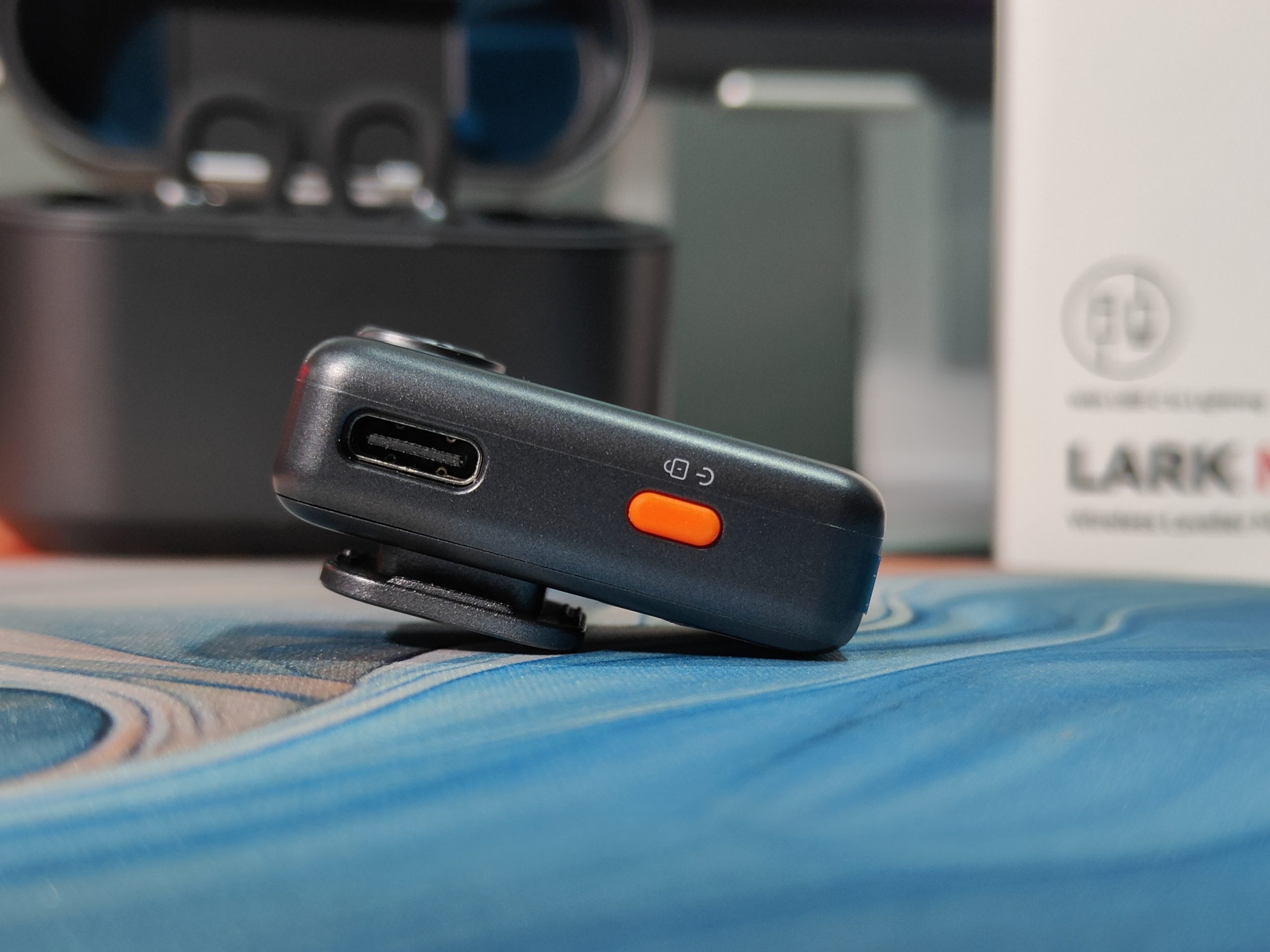 Get the Hollyland Lark M2S’ immediate aesthetic appeal off the bat with its wonderfully compact and slick design. One of the first things I noticed—and loved—was how unbelievably small and out of the way the actual microphone unit is. In a market currently awash with clunky, boxy transmitters (we’re looking at you, Rode Wireless GO), the M2S feels like a step into the future. It’s nearly invisible once clipped on, which is ideal for creators or professionals seeking clean visuals without blatant branding or lumps sticking out on camera.