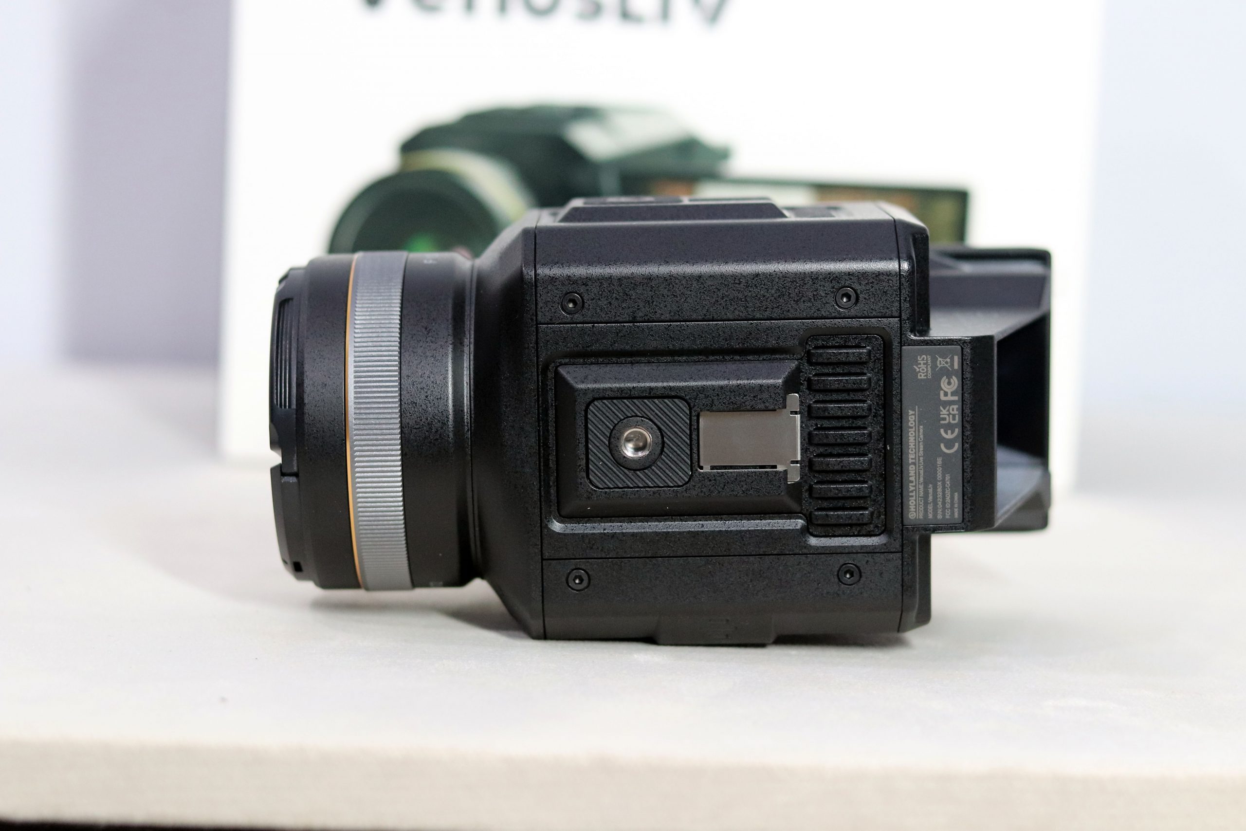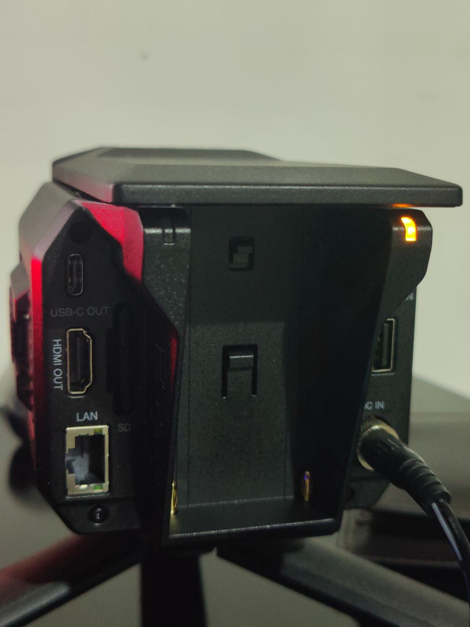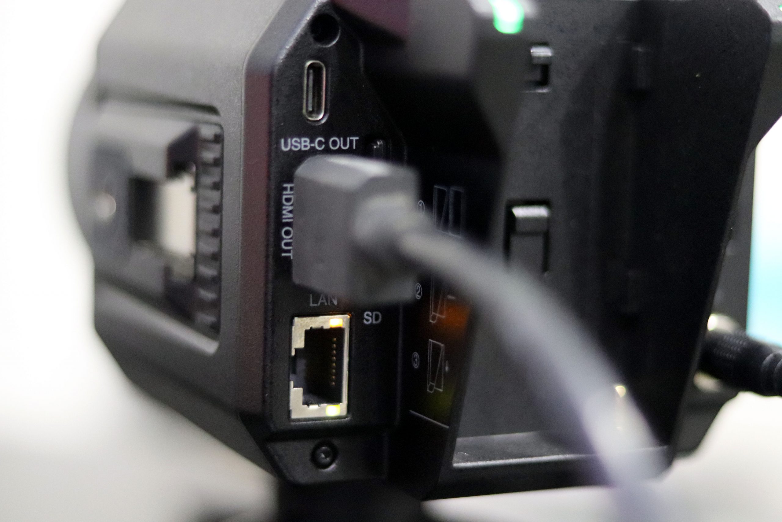 Turning our attention to the back, the camera houses a Sony battery, a 12-volt power input, and a Type-A USB connector. Additionally, the rear panel features a microphone and line inputs, catering to the diverse audio needs of users. The thoughtful design extends to the inclusion of a USB-C battery pack, HDMI output, a gigabit network connector, and a discreetly hidden SD card slot.
