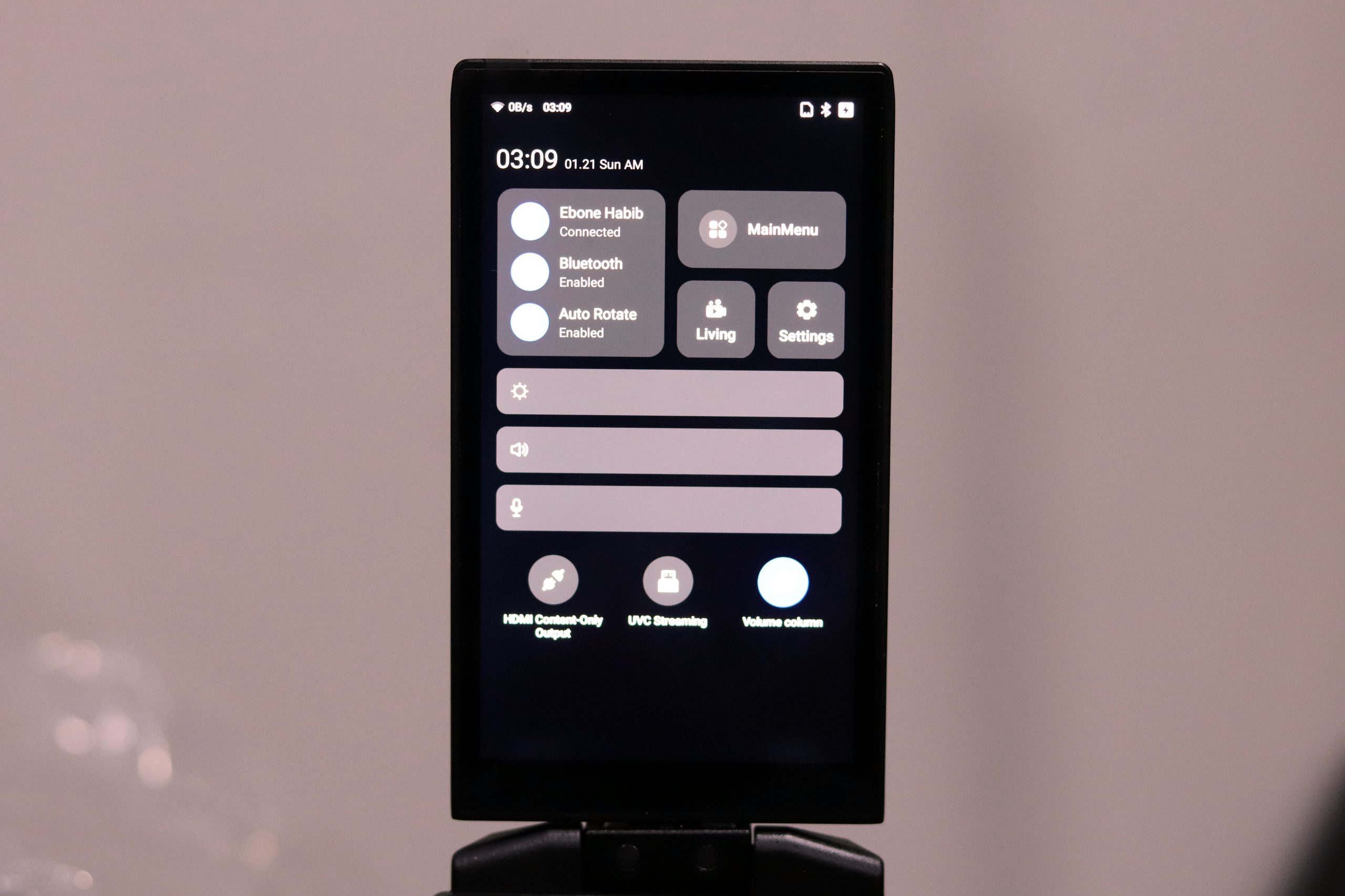 What immediately captures your attention is a glimpse of my studio in the display, including a microphone and other camera equipment. The interface is distinctly Android-based. This is evident as soon as you swipe down from the top of the screen, revealing familiar icons and controls. This choice to use a well-known operating system like Android is commendable. It has evolved from being a novel alternative to becoming a full-fledged operating system capable of supporting a wide range of software applications.