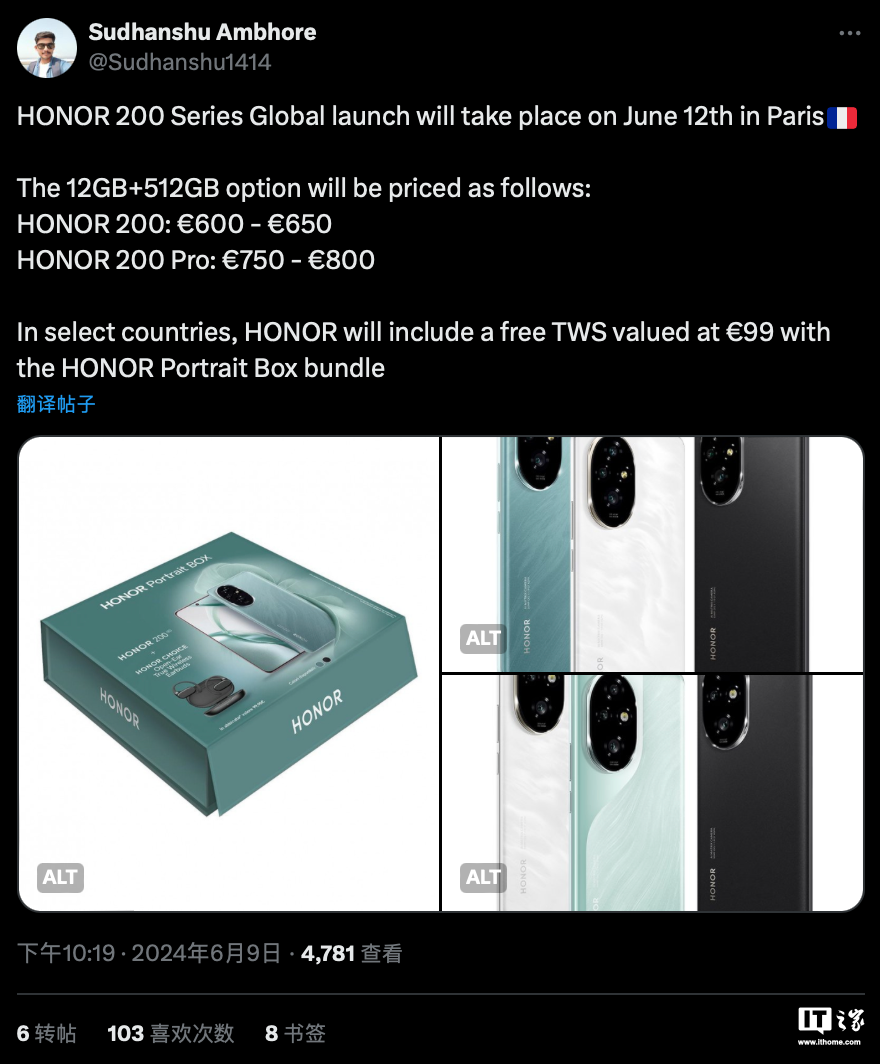 Igeekphone June 10 news, Honor 200 / Pro series mobile phones have been released on May 27, known as “Ya Gu light photo master”, today news source Sudhanshu Amphore revealed that the series of mobile phones will be released in Europe recently, and it also announced the overseas price information of mobile phones. For comparison, this mobile phone in overseas about 1.7 times the domestic price, Igeekphone sorted as follows:
