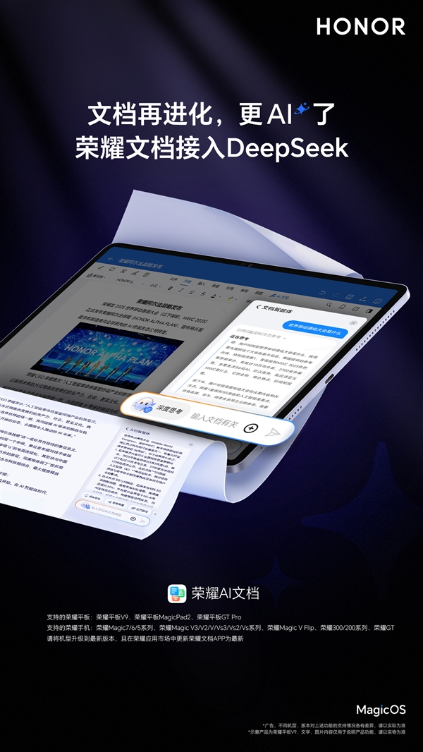 iGEEKPHONE March 14 news, today, Honor announced that Honor documents officially access DeepSeek model full blood version, in search questions and answers, text creation and other aspects of deep integration with DeepSeek, to provide a more intelligent one-stop document AI creation experience.