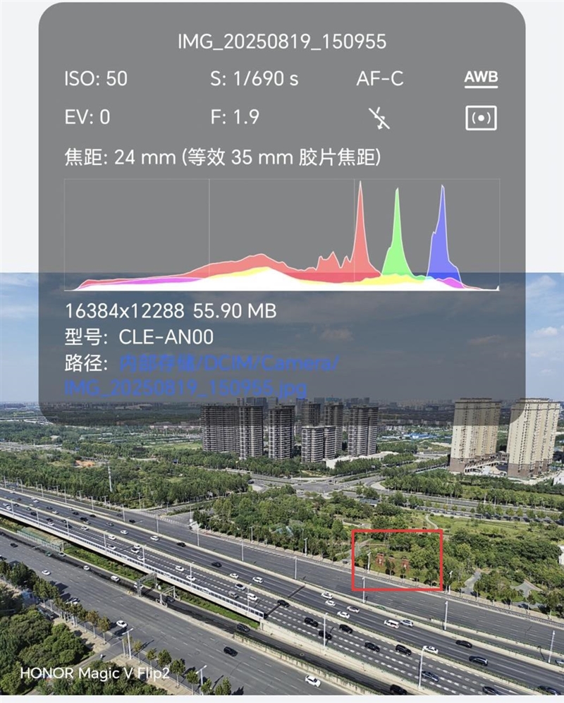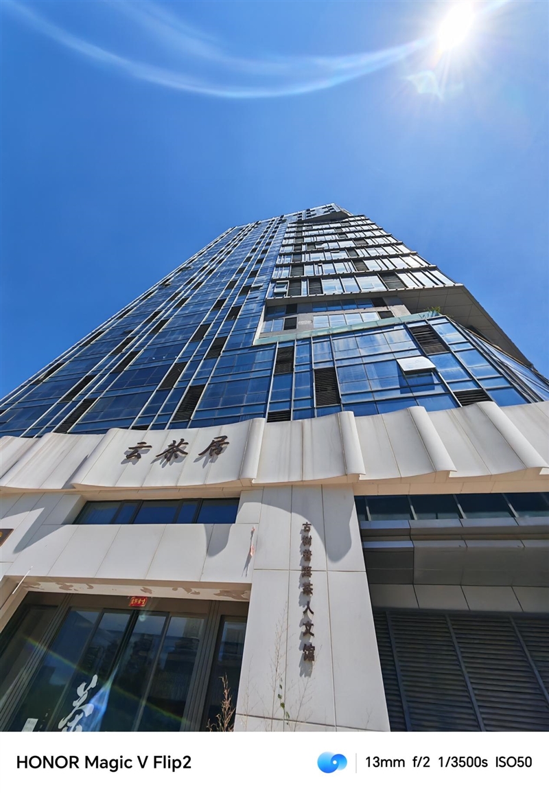 When putting the Honor Magic V Flip 2 to the test, the main camera really stood out. Thanks to the massive 200MP resolution, daytime shots were rich in detail — some images exceeded 50MB in size. Even tiny text far away remained sharp after zooming in. In its default mode, the sensor uses 16-in-1 binning to produce 12.5MP shots that pop with vibrant colors, making them instantly shareable on platforms like WeChat or Xiaohongshu. Zooming into faraway buildings gives you that cinematic, dramatic effect you’d expect from a flagship camera.