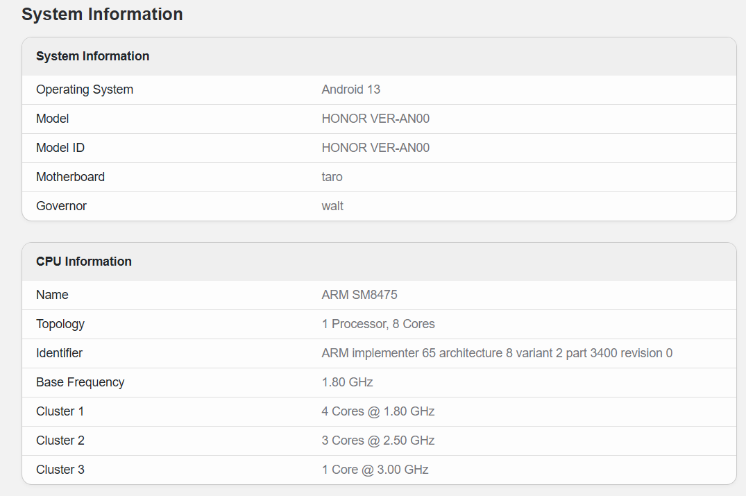 It can also be seen from the website that this new machine is equipped with a Snapdragon 8 + processor downclocked version, and the CPU is composed of 1 3.00 GHz core + 3 2.50 GHz core + 4 1.80 GHz core. For comparison, the Snapdragon 8 + processor CPU consists of one 3.2GHz core, three 2.75GHz cores and four 2.0GHz cores.