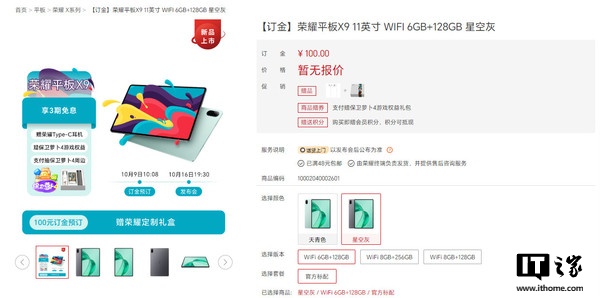 Igeekphone October 9 news, today Honor mall announced that Honor Pad X9 will be released at 19:30 on October 16, the tablet has now opened the booking, pay 100 yuan deposit can get free custom gift box and headphones, enjoy three periods of interest-free discount, and with the “guard Radish” game package.